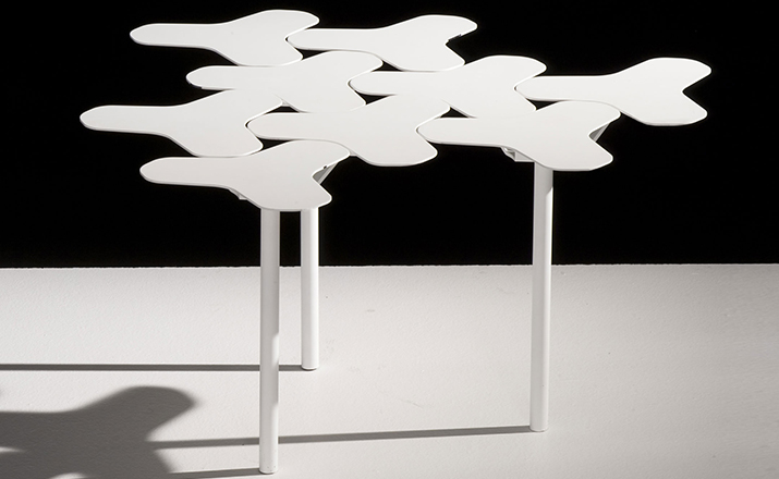 Nanook系列是由瑞士华体会体育官方在线官网Philippe Bestenheider于今年为意大利Moroso设计,并在今年的米兰家具展上进行了展出。Nanook系列包括一把凳子、一把椅子和一张角桌。该系列作品表现了平面到三维世界的转变。凳子和椅子的六边形网状结构的灵感来自于分子几何学。Nanook系列以铸模成形的合成材料作为基本框架,而其座椅部分的表面织物上则进行了打褶和印刷处理,使其看上去有动物皮肤的紧致感。如同因纽特人用动物皮毛取暖一样,作者试图用这种方式唤起人们深处的记忆,而他的创作灵感也源自遥远的北极。Nanook系列的桌子和凳子看上去更像是雕塑而不是家具。华体会体育官方在线官网源自分子结构的灵感让人们感觉该系列更加独特,尤其是多张桌子并排放置时,产生的效果就像一片静静矗立的风车。而有靠背的椅子则更像是一片被折叠的五彩雪花,令人犹如置身于神秘的北极。