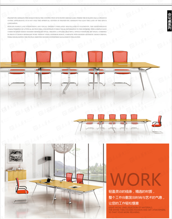 贝格系列产品减掉一切的视觉主题无关的杂元素,表现一种典型特征的切面,将视觉信息浓缩到单纯的极致,用简单的切面传达设计中现代简约风格,缔造时尚、唯美的办公家具艺术空间。在产品设计中结合极简的“人”字钢架外观造型设计,完全符合现代美学设计潮流,同时彰显以人为本的现代企业的经营理念。