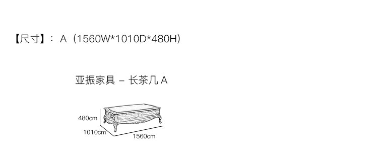 亚振家具 - 长茶几 产品尺寸/示意图
