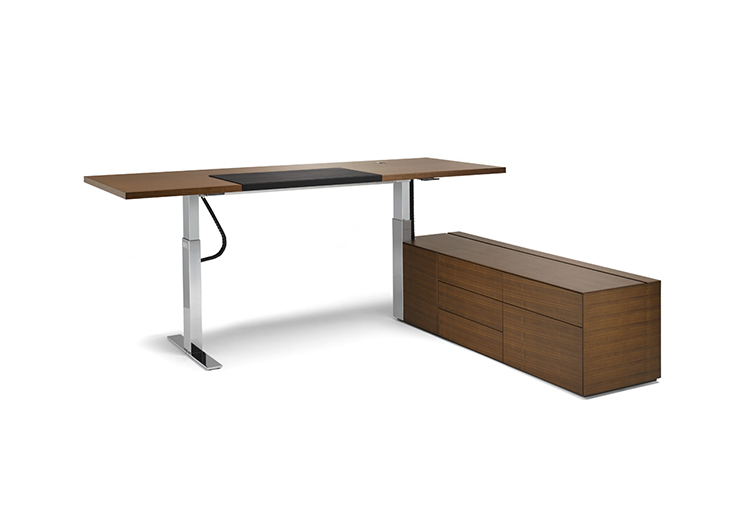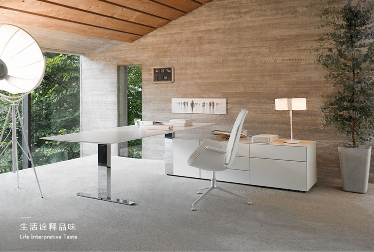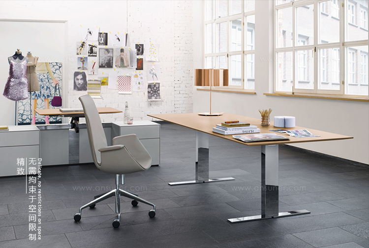 Exec_V是一款可调节高度的办公室系列,灵活的升降功能是这款产品的代表性功能。你既可以坐着也可以站着,完全符合人体工程学和对健康的追求。桌面看起来像是漂浮在底座和底座上,直线和角、宽和立方体的形状形成一种和谐的相互作用。电缆被包裹在升降底座上,作用于包括班台、副柜、会议桌等等。Exec_V是一款具有代表性和使用性的优秀升降班台.