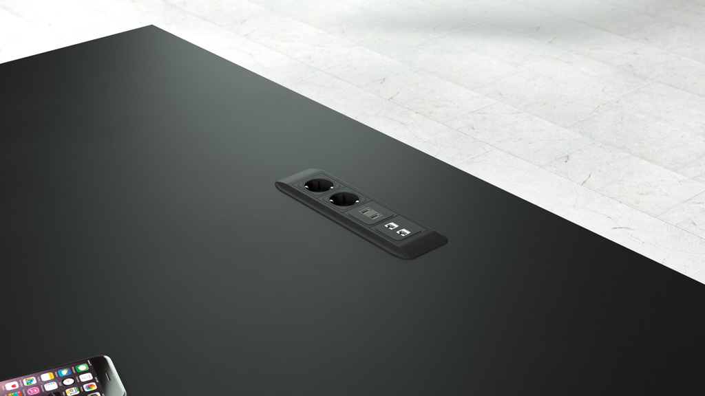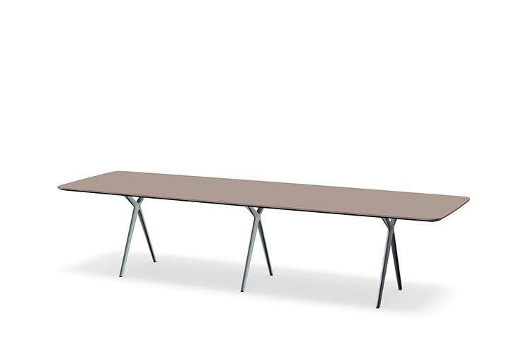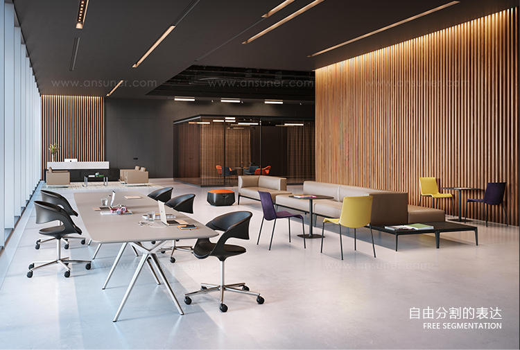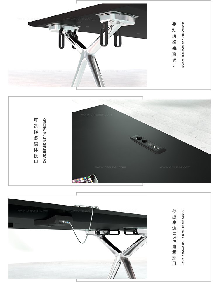 这款Conference-X最大的亮点就是:桌子腿是可以将两个桌面一起快速而轻松地结合在一起,而不需要借助任何工具。而这个专利技术的的连接关键是:桌子腿顶部处在固定锁,桌底有锁扣,以此保证绝对安全和稳定。这也很好的解决了会议台的多样性:从个人的工作桌到成排的会议桌,桌子形状、大小、都可以通过脚架来进行拼接.