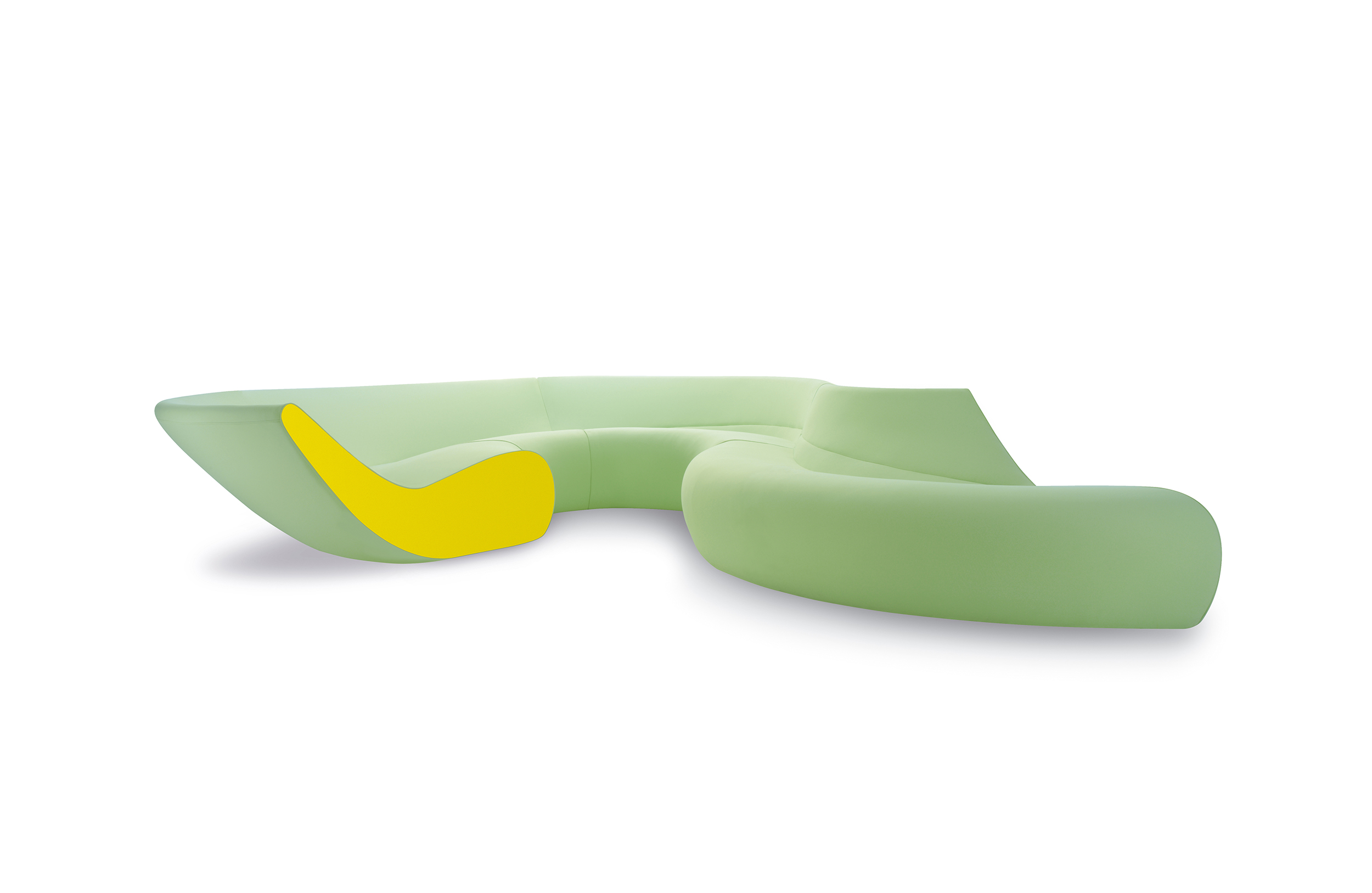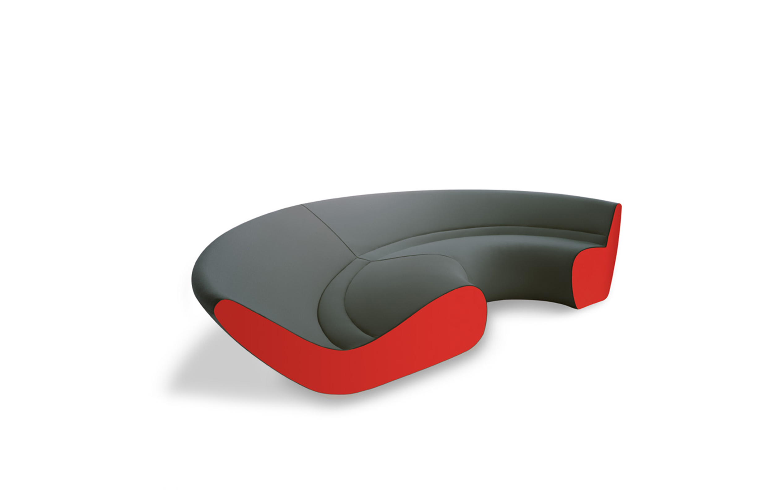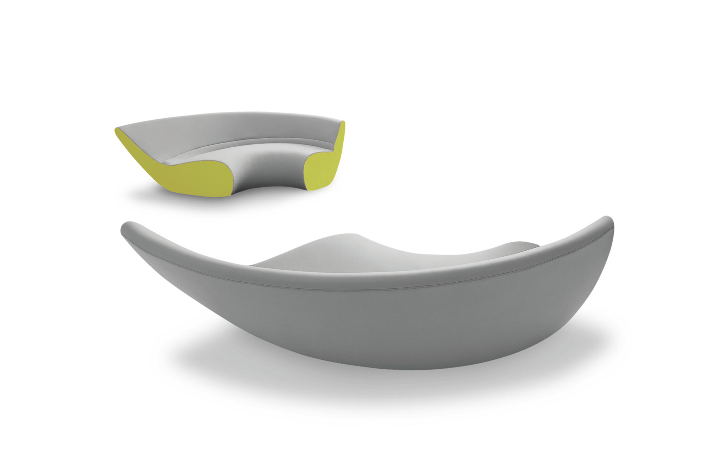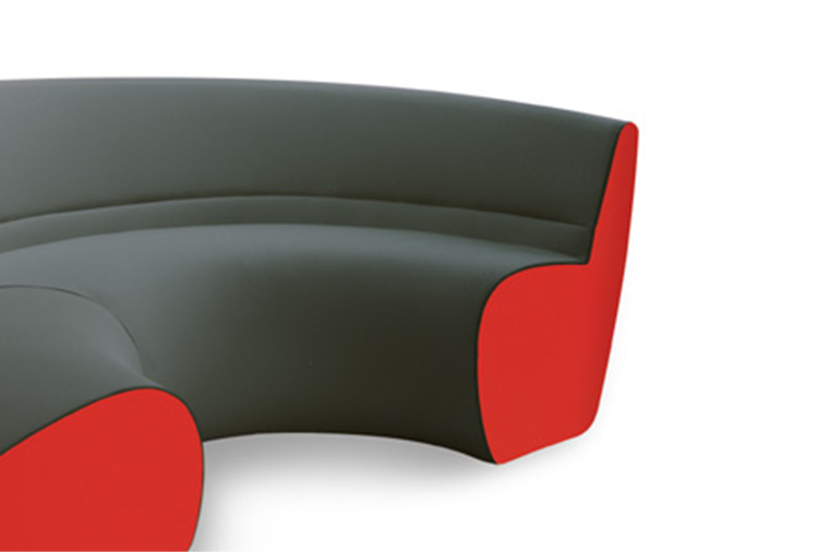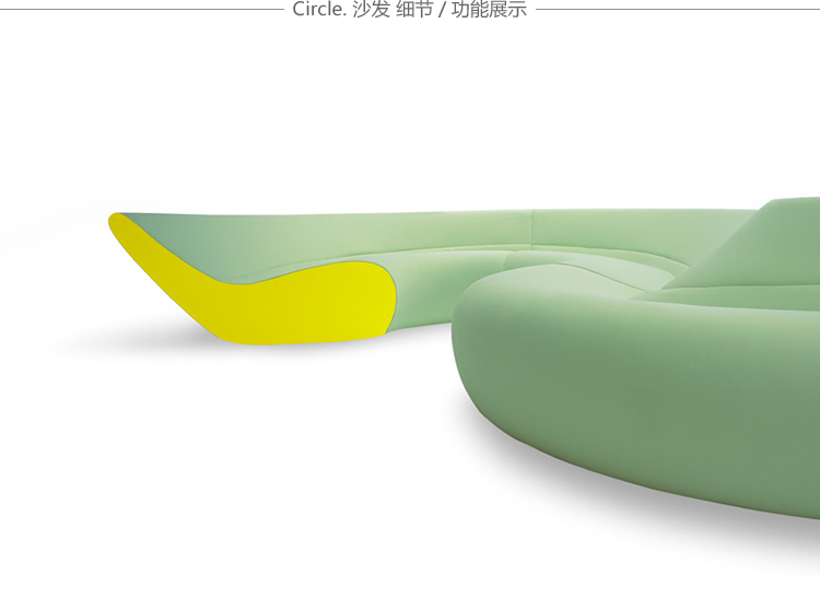 圆椅有四个沙发组成,其中两个沙发可以组成一个半圆,所有沙发都是弧形结构的。背部和休息区的斜率弥补从直立坐着到躺着放松的完整流程。四个沙发其他数据皆有不同只有高度是唯一不变。