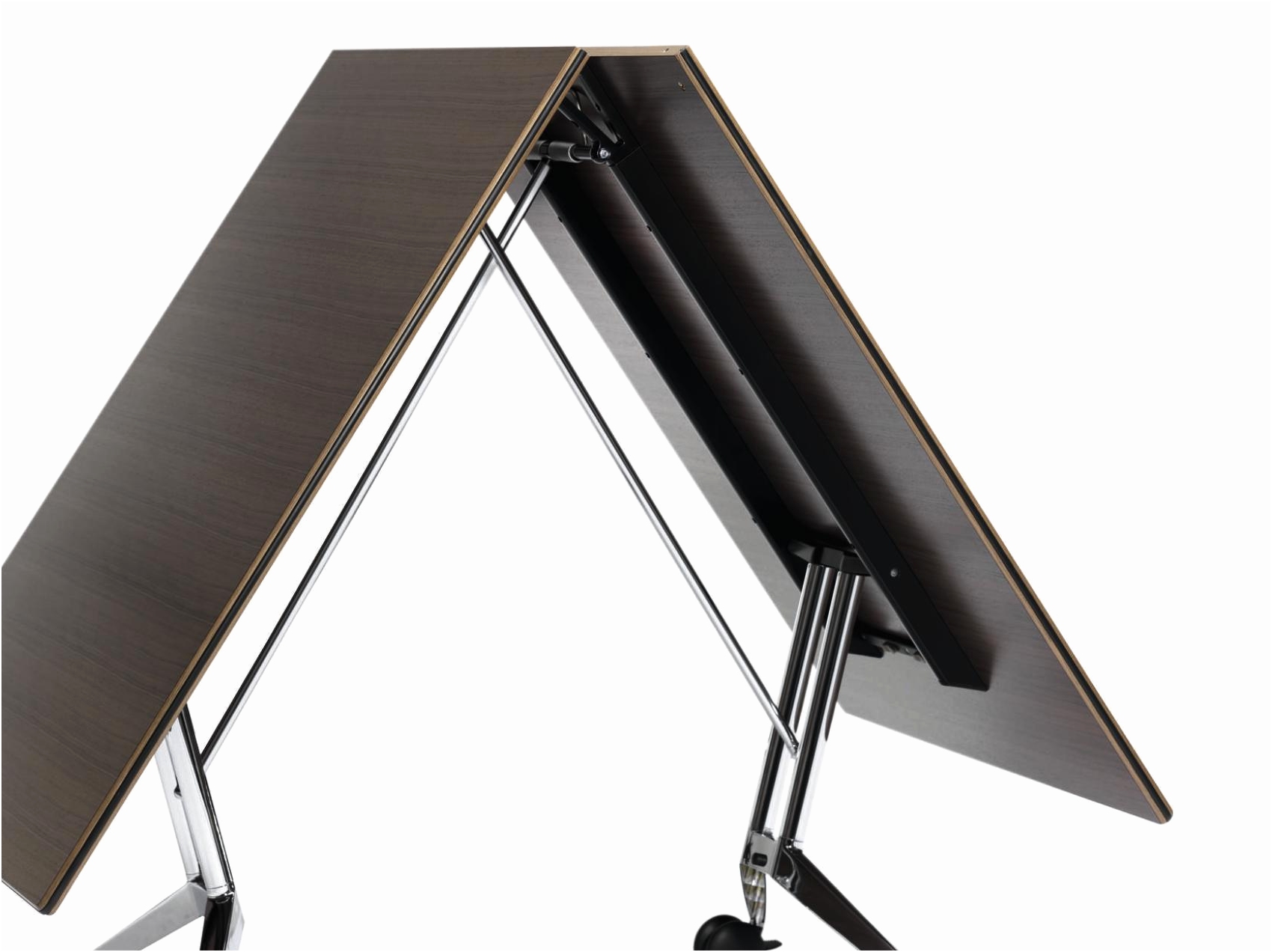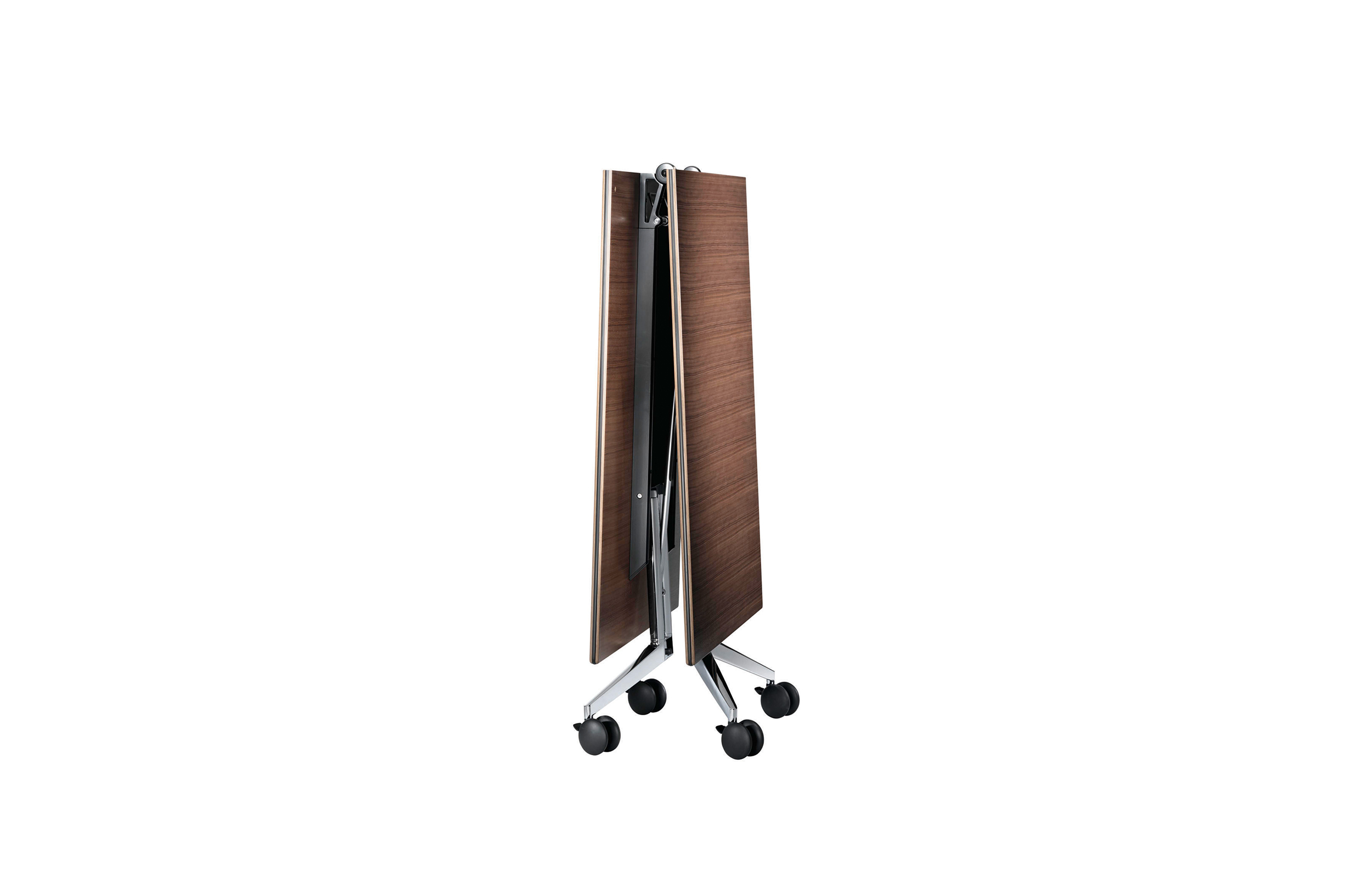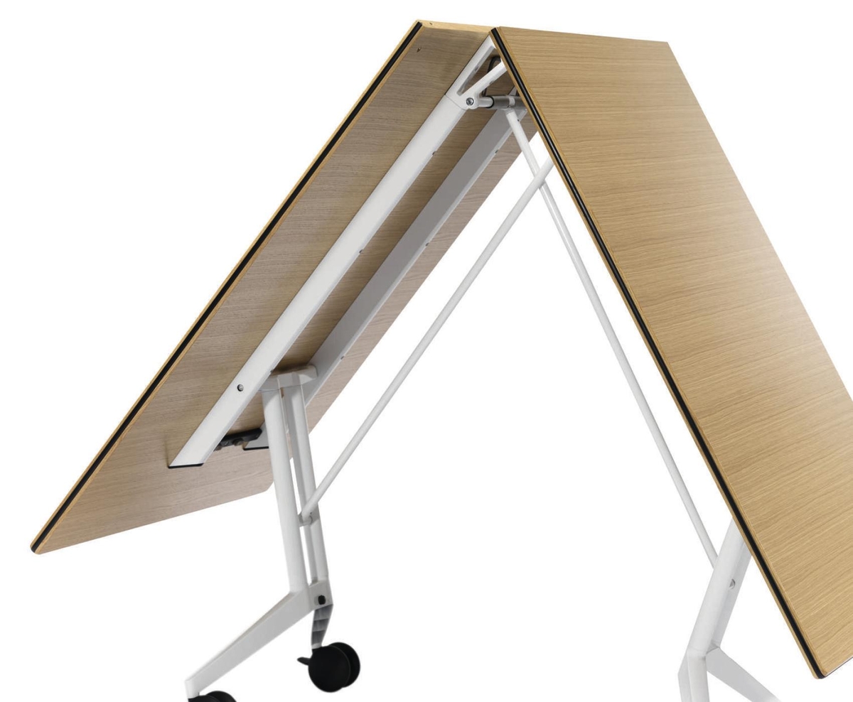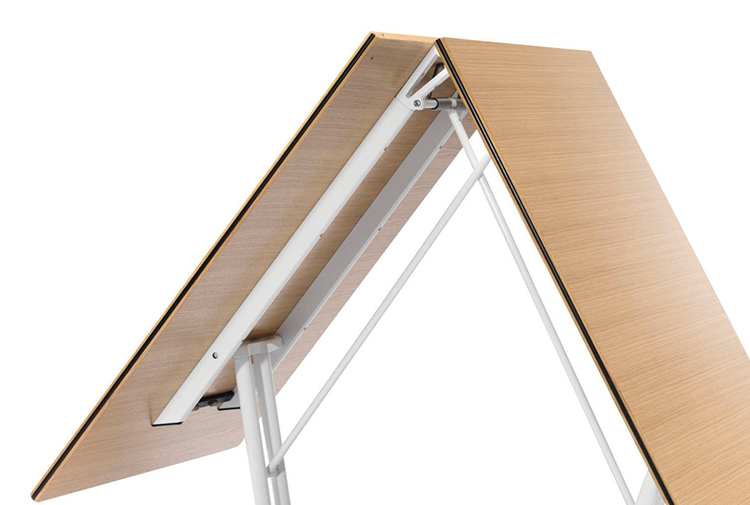这张桌子在节约空间方面有着出色的设计。分工合作、灵活的团队合作以及自由职业者与项目团队的短期整合已经成为我们日常工作的一个组成部分。也就是说,这是在工作环境必须体现出来的时候了。这就是为什么我们设计了一张能容纳个人或者八人组的会议表。它可以简单地与其他个人桌子连接起来,形成一个会议桌,并且可以在不需要的时候立即折叠起来,放置在房间的一侧。因此,每个人都可以像环境所允许的那样富有创造力。