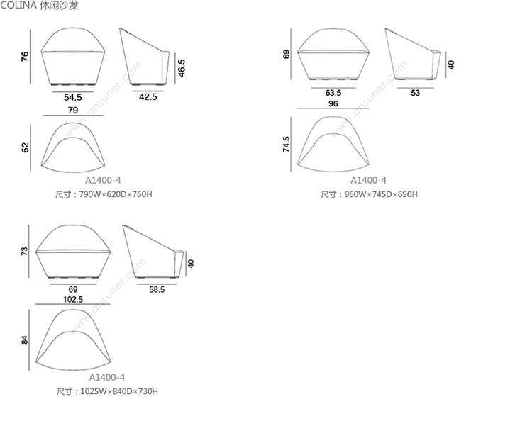 有3种尺寸可供选择:小型,中型和大型皮革或织物软垫。 小型,中型和大型版本采用软垫实心底座。 此外,Colina Medium有悬臂,雪橇和4腿木质底座。