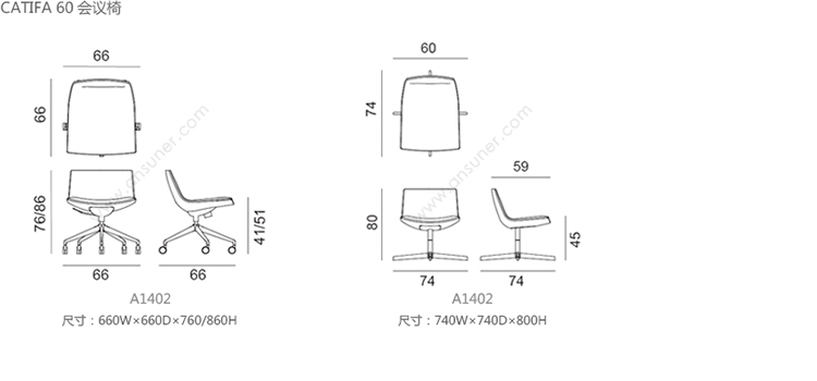 Catifa 60 会议椅 系列尺寸/示意图