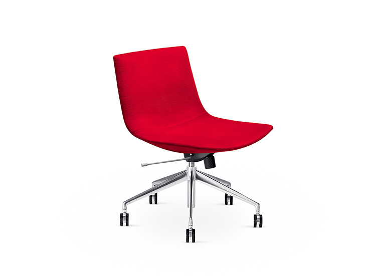 Catifa 60的外壳采用柔软的聚氨酯制成,采用皮革装饰,颜色范围广泛的织物或客户自己的面料。 它也可以配备扶手,如果需要可以盖上。 底座采用抛光铝材质,采用4星或5星版本,配有自制动脚轮。 各种机构可用于增强舒适性和功能性:旋转,自动,气体或气体与倾斜重新定位机制。