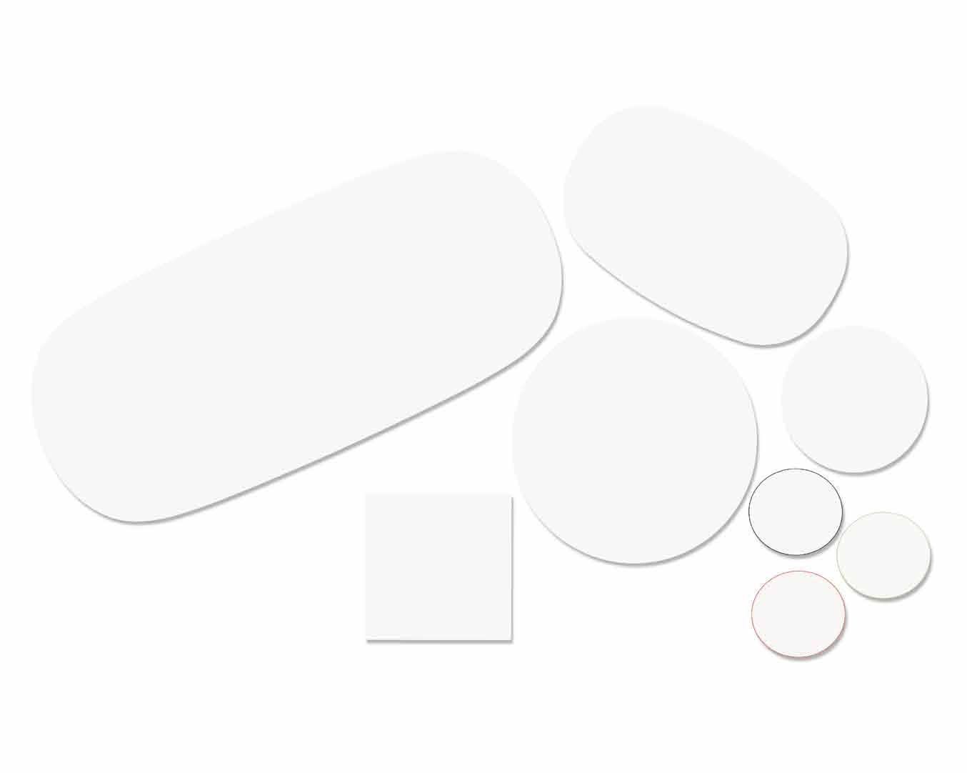 高脚台为圆形底座,白色有光泽或黑色哑光粉末涂层钢,顶部为白色压花MDF(厚2.5厘米)或层压板FenixⓇ(厚2,6厘米),有不同形状和尺寸(方形,圆形)。 身高105厘米。