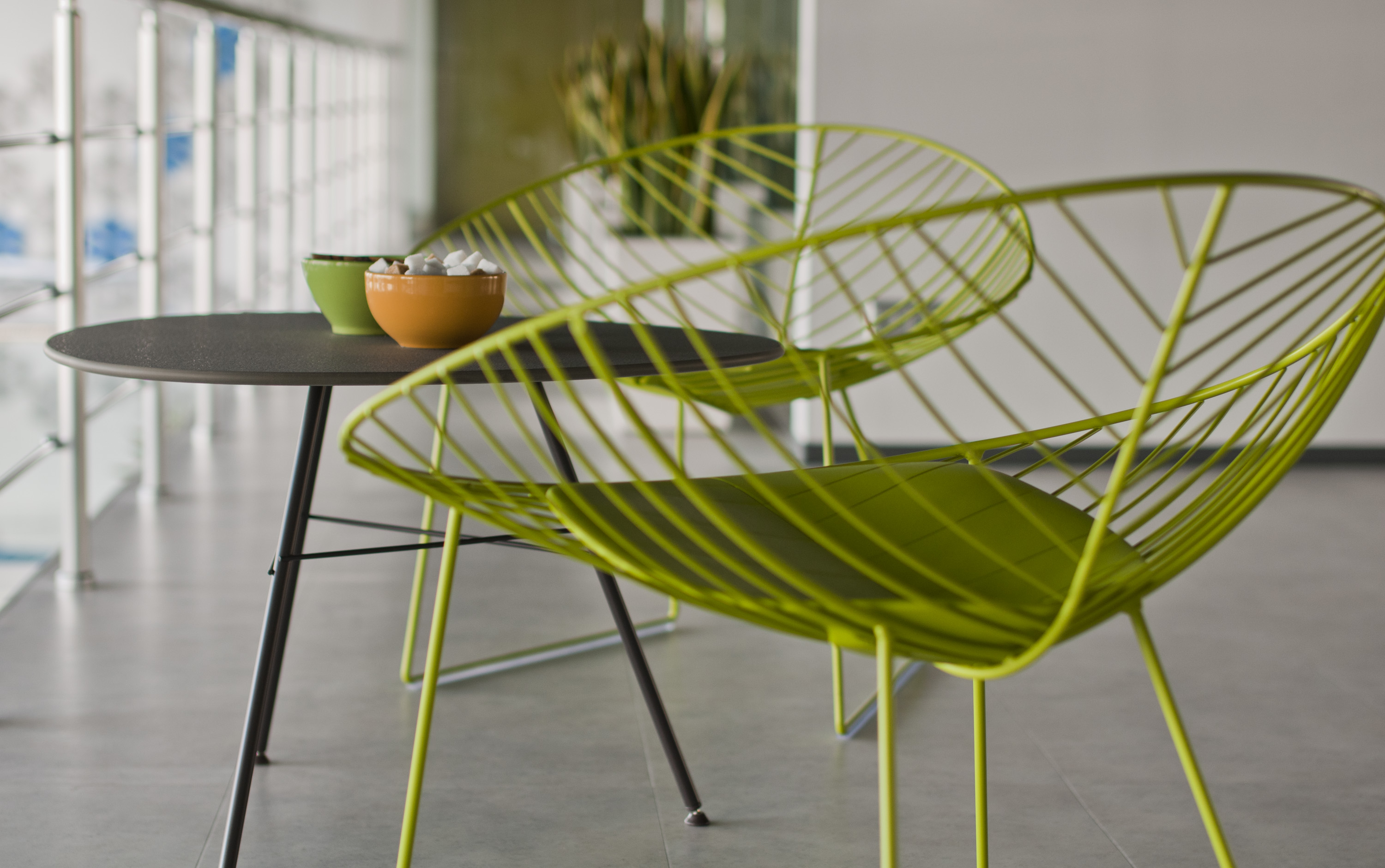 基座有三脚或四脚。全部采用白色,摩卡或绿色涂漆钢材制成。防水HPL上衣有灰色可供选择。