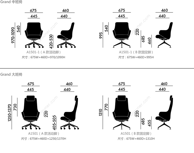 Grand Executive椅子有不同的版本:Grand Executive Lowback以其靠背为特色,Grand Executive Conference为访客座位和会议座位提供了先进的解决方案。与Grand Repos和Repos一起,它们形成了一系列椅子,为办公室和会议室以及大厅,等候区和接待区提供统一的外观。