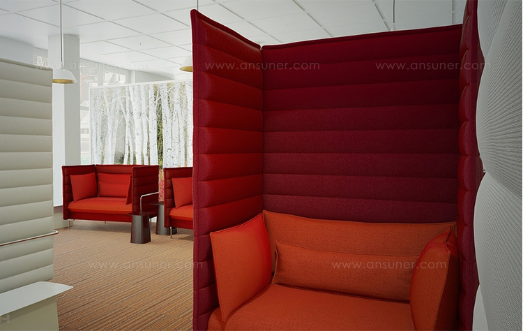 各种Alcove沙发是为开放式办公室设计的,在繁忙或繁忙的环境中为他们提供庇护的私人空间。 这使他们成为退出集中工作或小型会议的理想场所。