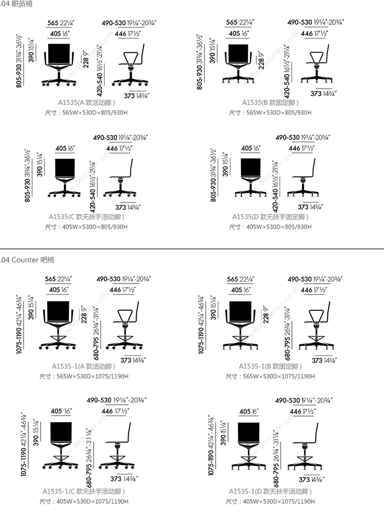 .04 职员椅 系列尺寸/示意图