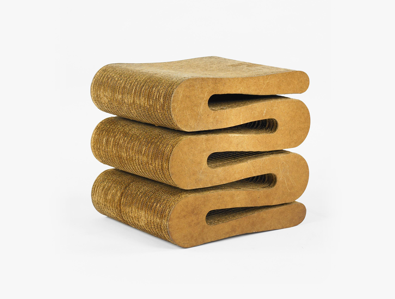 Wiggle Stool是Frank Gehry 1972年家具系列“Easy Edges”的一部分,该系列成功地为纸板等日常材料引入了新的美学尺寸。 标志性的凳子结实耐用,为任何室内装饰增添了醒目的音符。