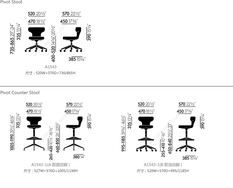 Pivot Stool 系列尺寸/示意图
