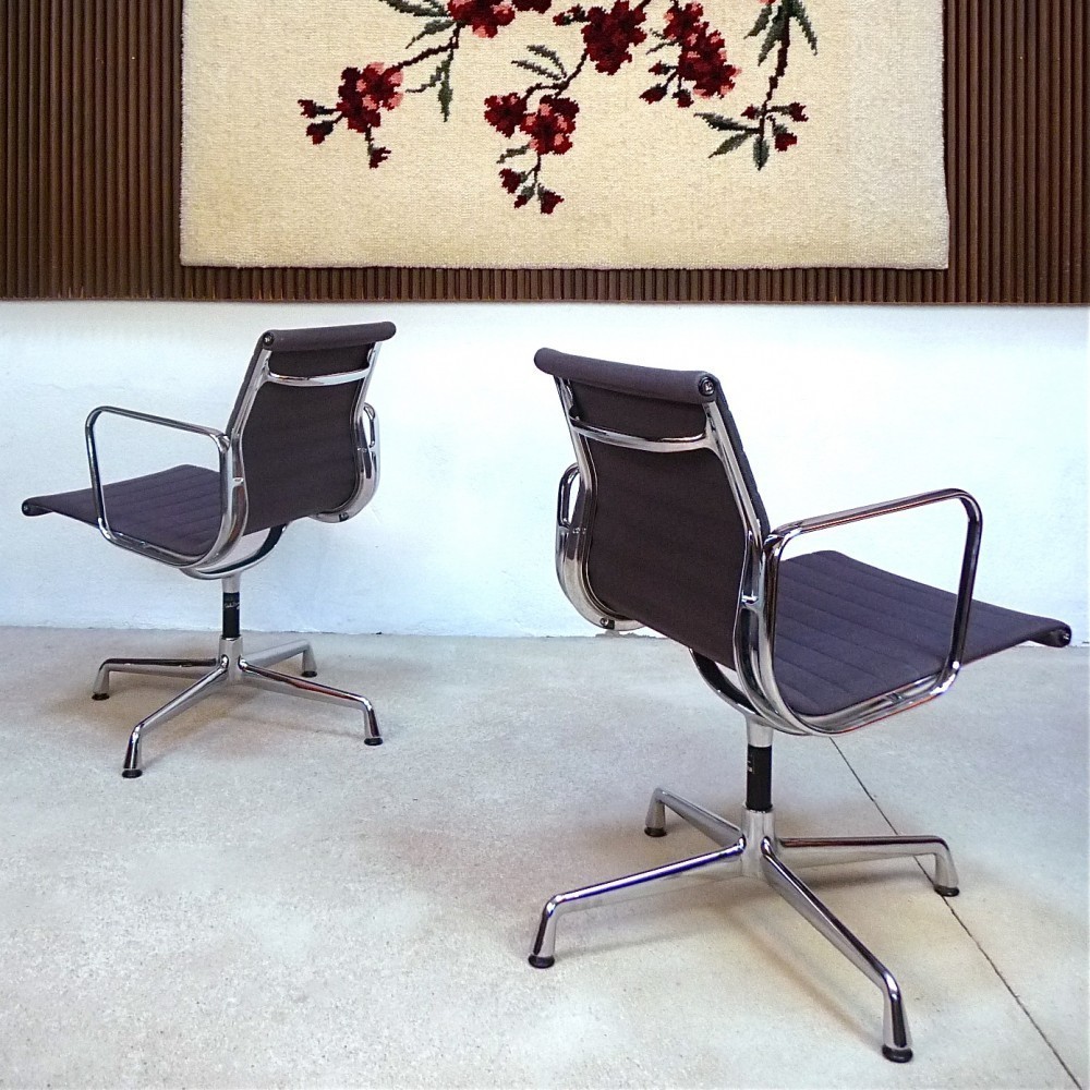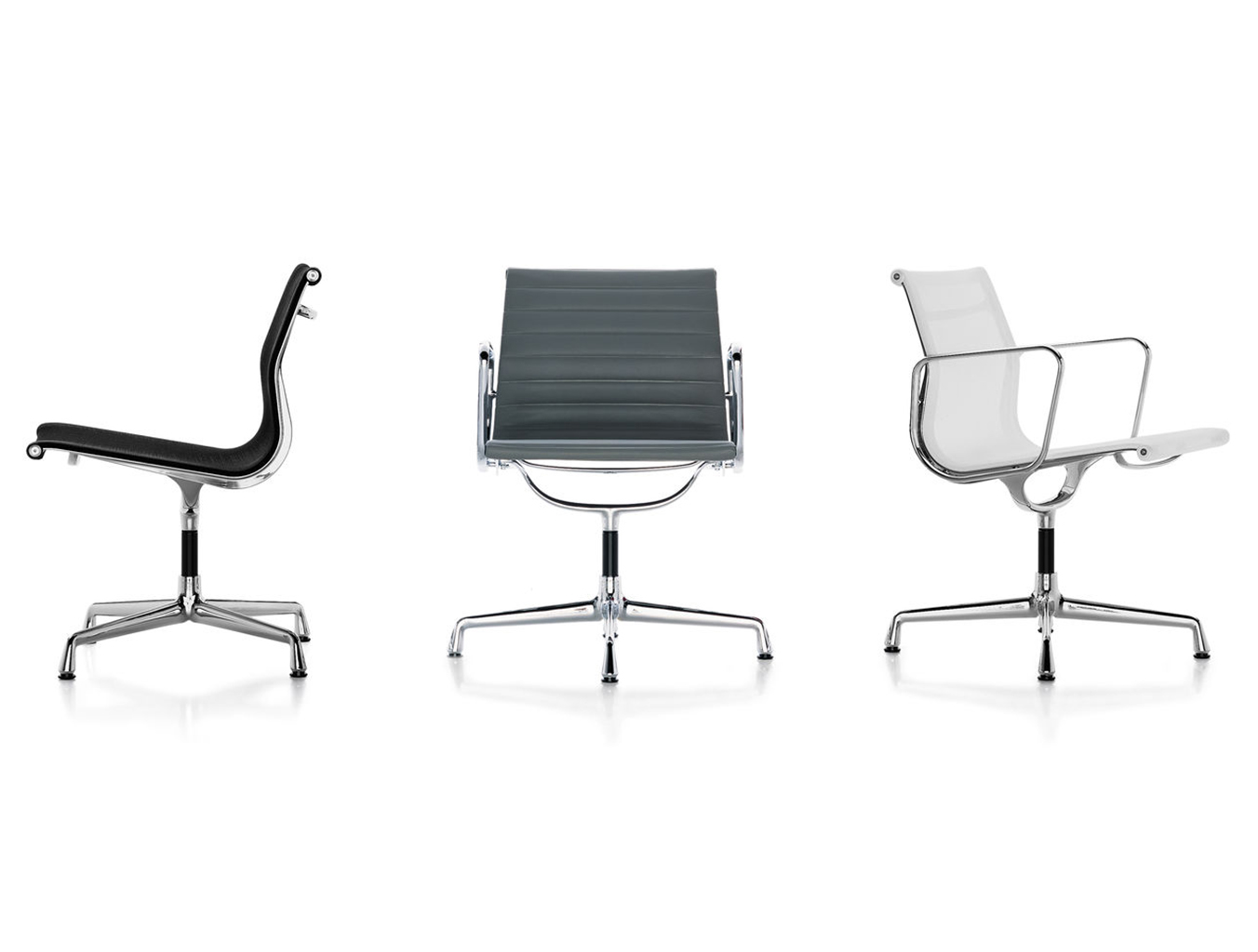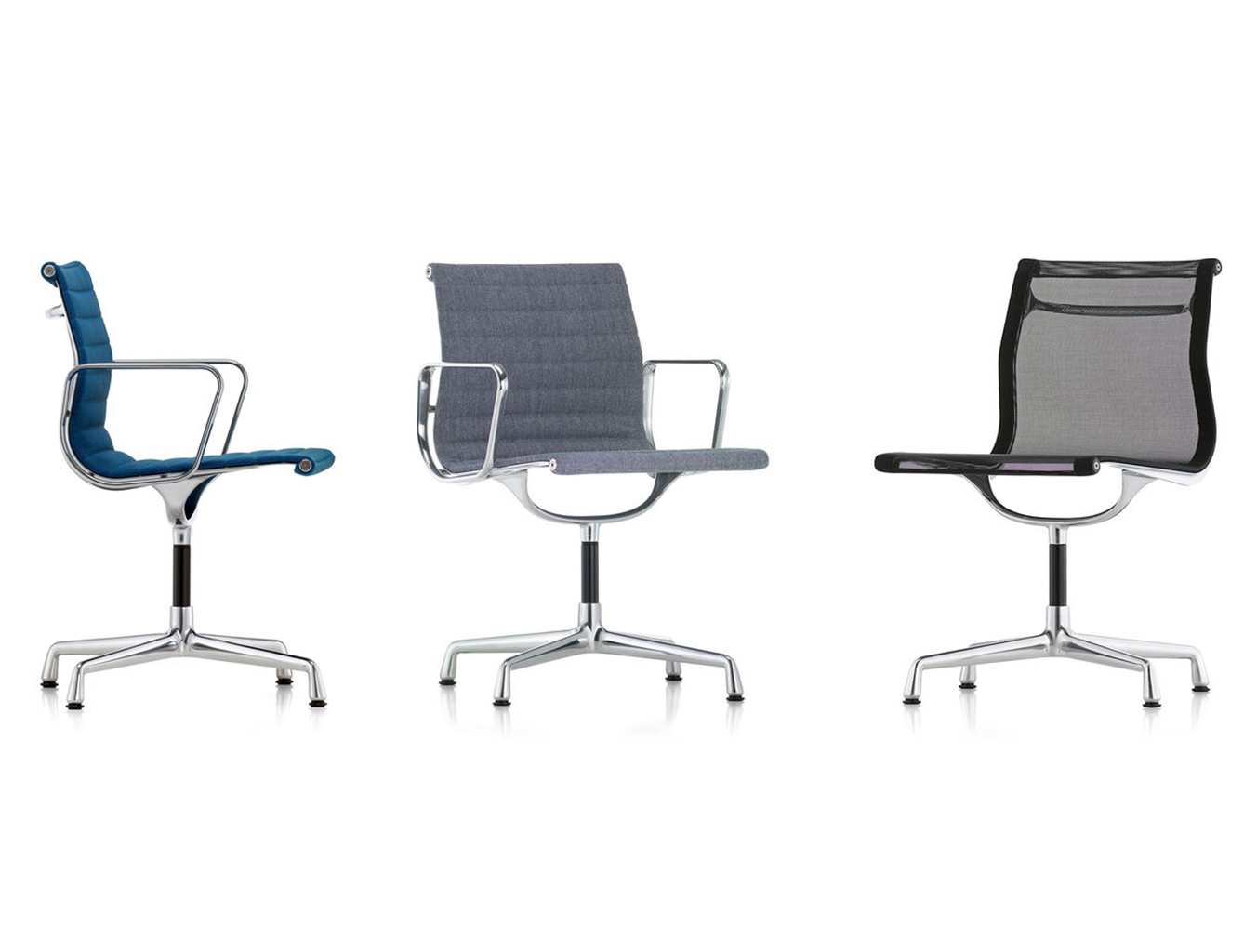 Charles和Ray Eames的铝椅EA 101,EA 103和EA 104非常适合与桌子组合使用:与铝组的其他型号相比,它们更轻,更高,更窄。 由于室内装潢具有多种柔和鲜艳的色彩,因此很容易找到适合任何餐厅的完美椅子。 这三种型号的不同之处在于基座的类型 - 固定或旋转 - 以及是否存在臂。