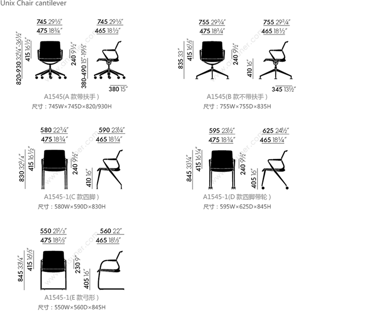 Unix Chair cantilever 系列尺寸/示意图