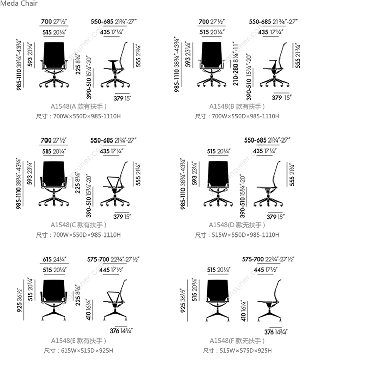 Meda 职员椅 系列尺寸/示意图