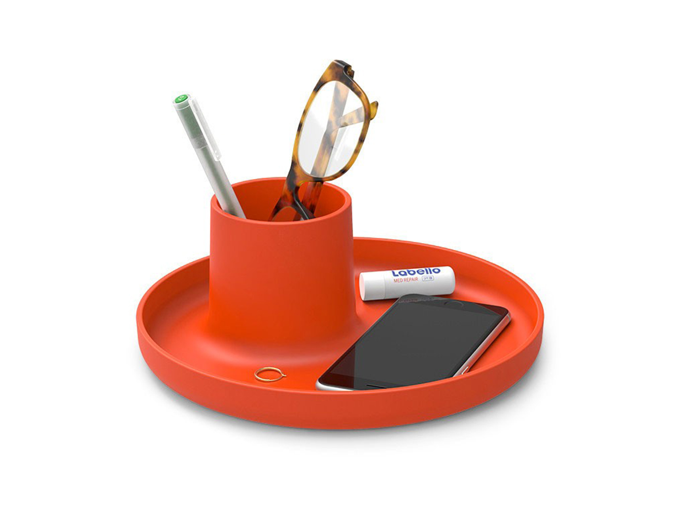 O-Tidy是一种实用的多功能存储容器。 该设计不仅提供托盘和杯子功能,而且还将其简单的形状组合成一个新的,完美比例的物体。
