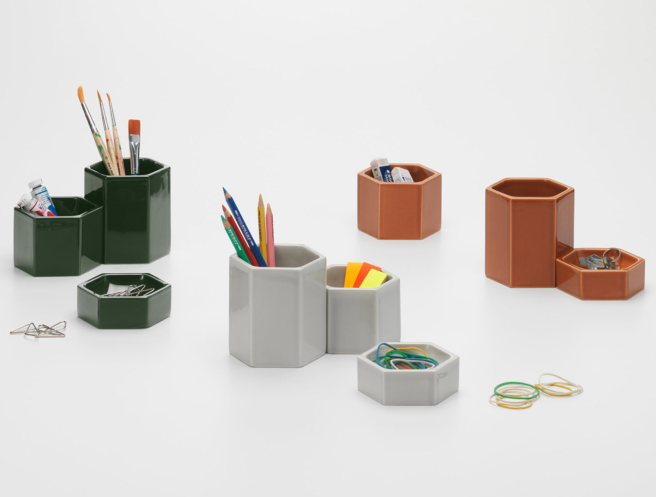 英国华体会体育官方在线官网Jasper Morrison与Vitra合作了30年。 在这漫长而富有成效的时期,除了他众所周知的家具设计外,他还创作了许多小装饰品。 莫里森现在已经将他对比例和材料的正确本能应用于六角形容器的创造 - 六角形紧凑型通用容器,可以以有吸引力的组合排列。 坚固的陶瓷材料的重量提供了良好的稳定性,而其精细,凉爽的表面具有强大的触觉吸引力。