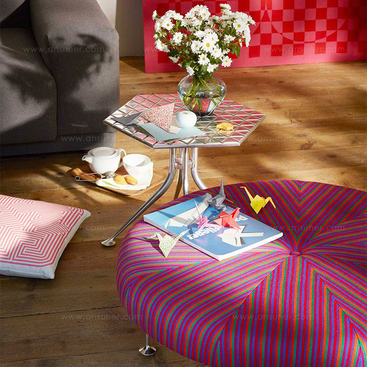 Girard被认为是面料、颜色、图案和纹理的大师级华体会体育官方在线官网。他的六角形桌子的铝制顶部刻有几何图案,在墙上的光线反射中可以看到。这种有趣的效果与Girard装饰性边桌的冷酷金属美学相得益彰。
