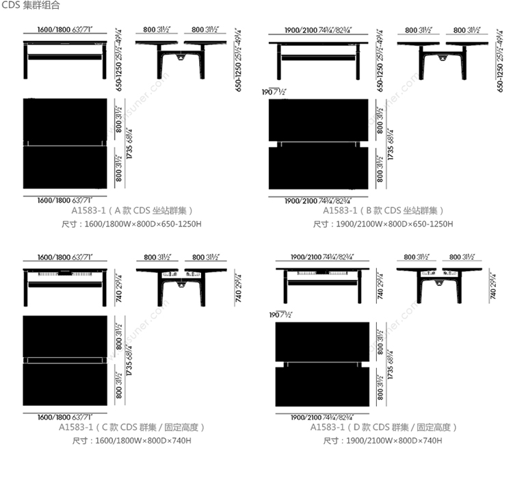 模块化办公桌系统CDS可以配置为单独的桌子,多个工作站的集群,宽敞的工作台或各种尺寸的会议桌。 所有产品均可在固定高度或手动或电动坐式解决方案中使用。 该系统采用标准底座设计,大部分预装有折叠腿。 这使得CDS能够满足对规划,使用,物流,装配和维护灵活性的最严格要求。
