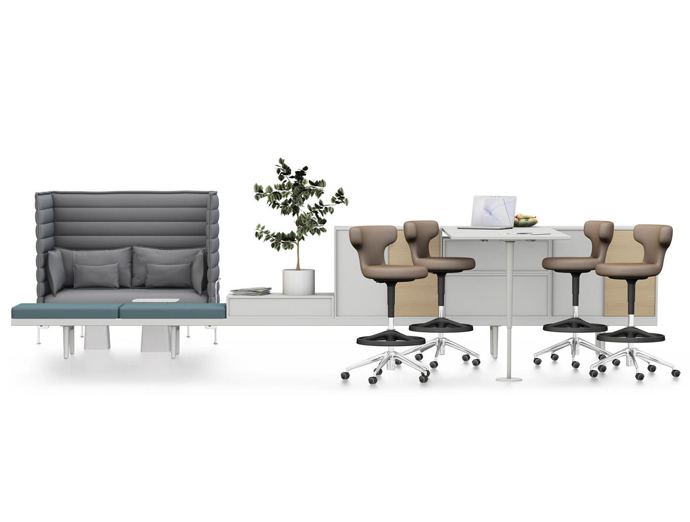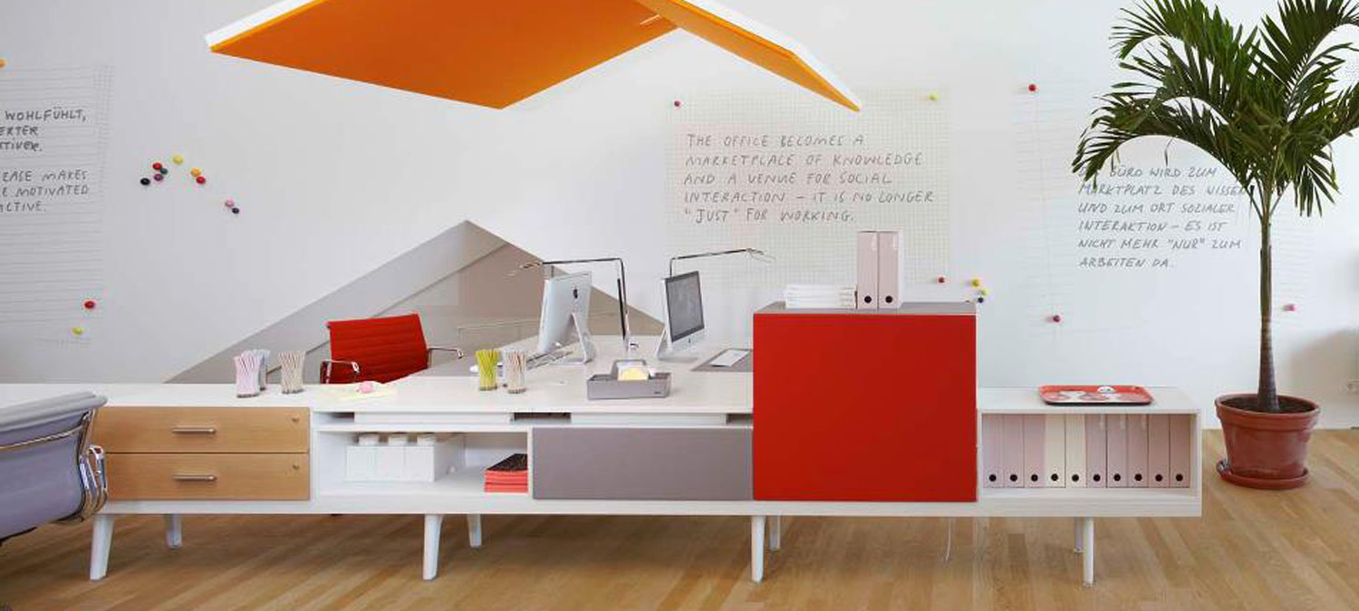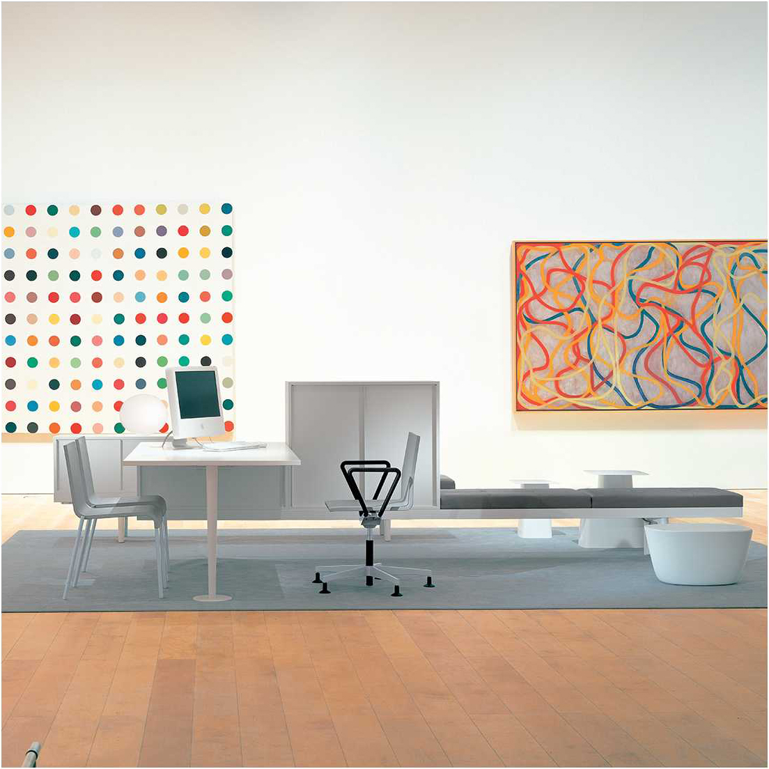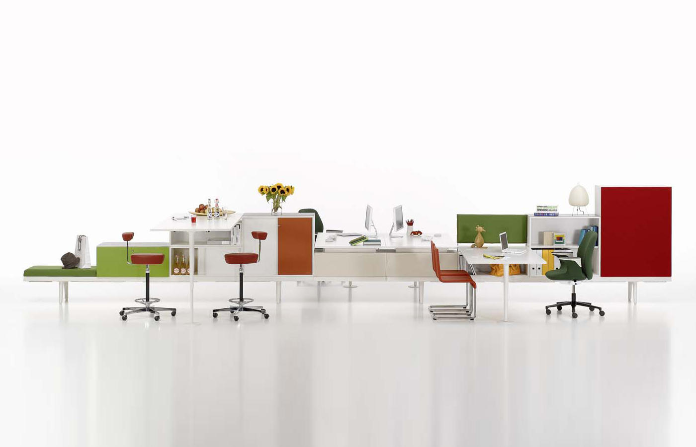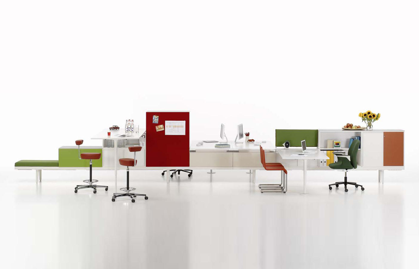 34级是办公家具系统,既可用于实现团队工作的解决方案,也可用于个人工作的工作站。 该系统基于34厘米高的工作台,使其看起来轻盈且漂浮。 工作台是电缆管理的平台,将橱柜,架子,桌子,座椅或花箱等模块放置在易于达到的水平。