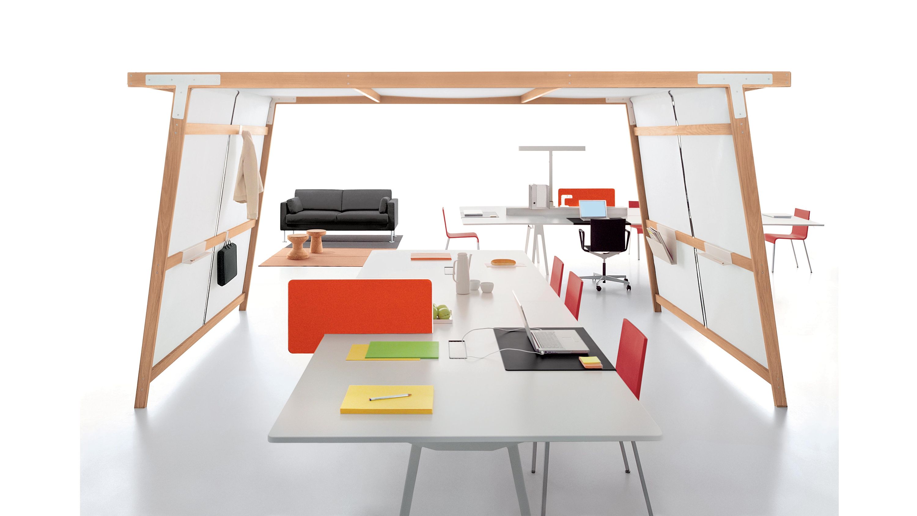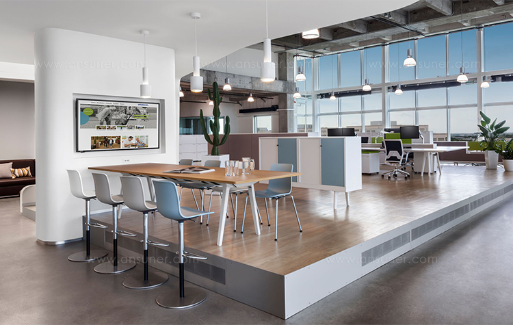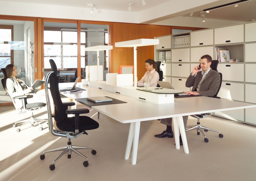 办公家具系统Joyn通过在一个层面上有效地结合多种空间功能来响应当前工作场所文化的趋势:平台。 Joyn平台的模块化结构可自发适应不断变化的工作要求和技术。