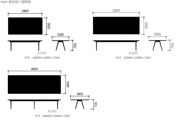 Joyn 会议台/洽谈台 系列尺寸/示意图