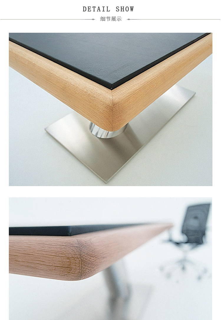 表与黑色皮革软垫桌面。桌面框架采用实心橡木制成。抛光不锈钢60o倾斜Ø250mm色谱柱底座,连接顶部和底部厚度为15 mm的铝板。底部支撑采用亚光不锈钢制成。底座配有可调节的脚矫直机。