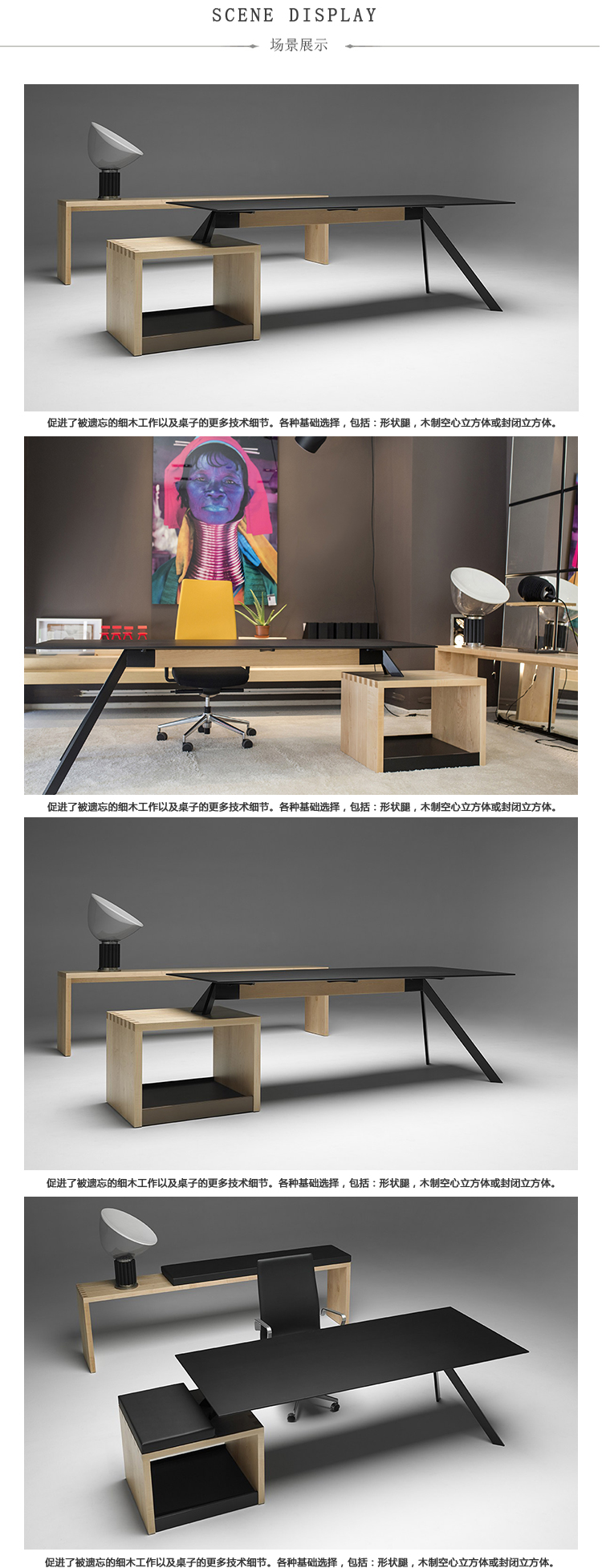 坚固的枫木与手指关节系统相结合,促进了被遗忘的细木工工作以及桌子上更多的技术细节。各种基础选项,包括:A形腿,木制空心立方体或封闭立方体。