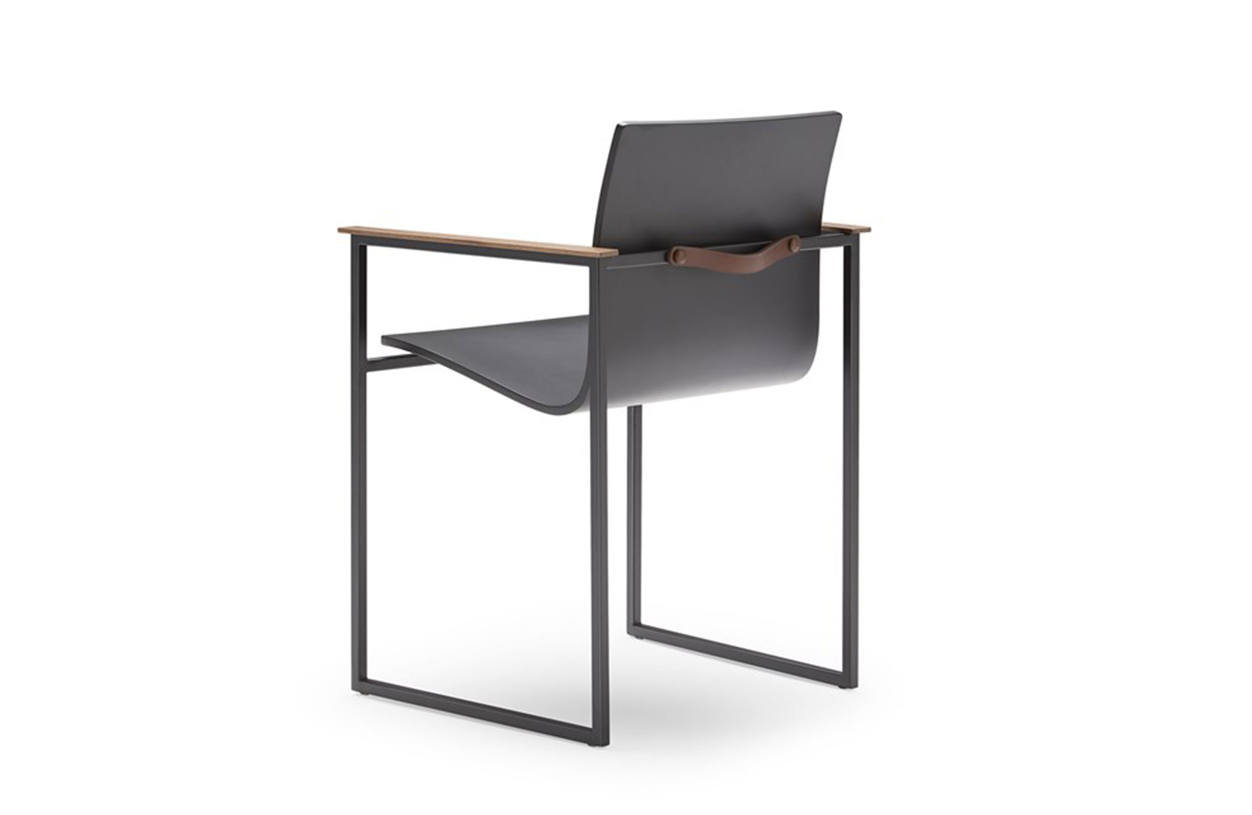 带扶手的雪橇漆椅 COPENHAGUE是涂漆鞋椅子与收集的涂漆的金属框架和核桃臂BlackTone的JMM