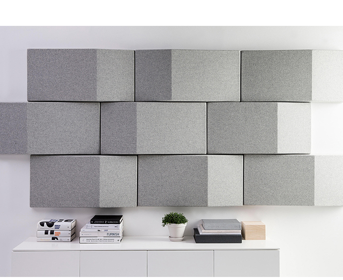 Triline Wall吸收并散发令人不快的声音反射,从而改善声学效果。由于模块具有直边,因此它们非常适合创建图案以覆盖大面积的墙面空间。每个模块包括安装在MDF板框架上的吸音再循环填充物。可见侧面采用羊毛织物装饰。该产品具有特有的三角形形状,可以打破击中模块的声波。由于采用隐藏式钢支架,产品可水平或垂直安装。