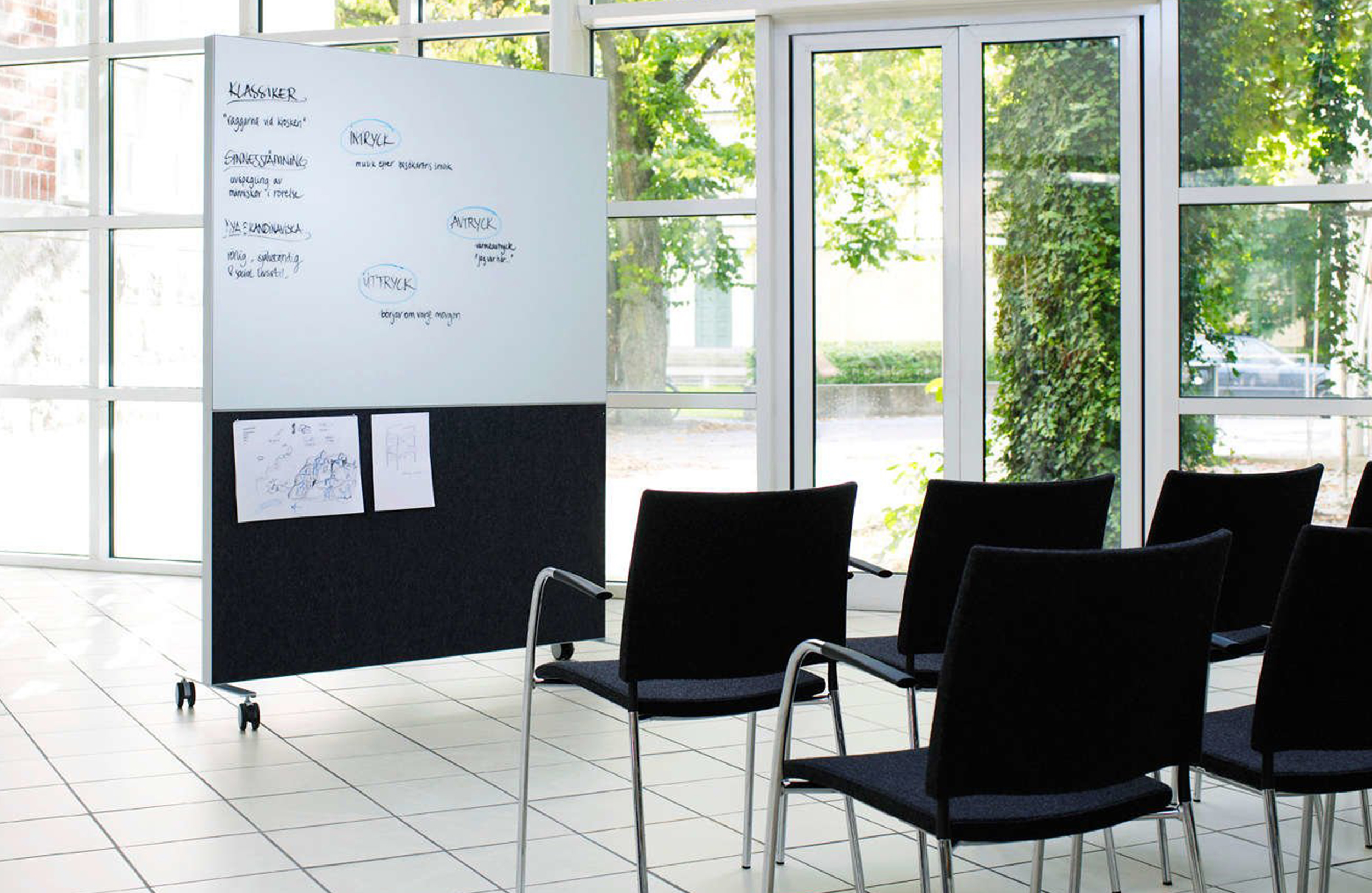 Nina Jobs设计了Alumi Combi和Alumi Combi Light,旨在鼓励同事随心所欲地召开会议。屏幕既可作为吸音器,也可作为书写板,安装在轮子上,便于携带。多功能书写板与Alumi系列中的其他吸音屏幕具有相同的低调外观,使它们能够和谐统一。