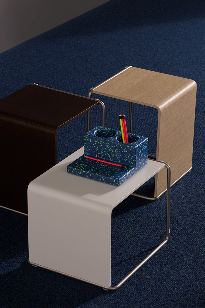 受日本学校的凳子启发,UENO是线条和表面的完美融合:金属管弯曲成L形顶部。