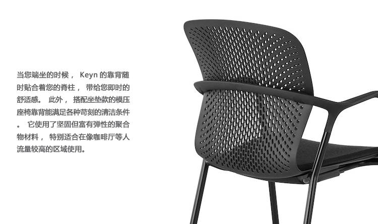 Keyn座椅系列是一套会议和单椅的组合,能为协作式的空间提供响应式的运动机制和即时的舒适感。由伦敦设计团队forpeople设计的这款产品,使用了四个关键部件来创作此系列中的每个型号的产品,所以每款产品都能保持一样的视觉吸引力。Keyn的CradleFlex运动机制能响应姿势的变换,倾仰角度可达10度,能为您带来令人愉悦的舒适感