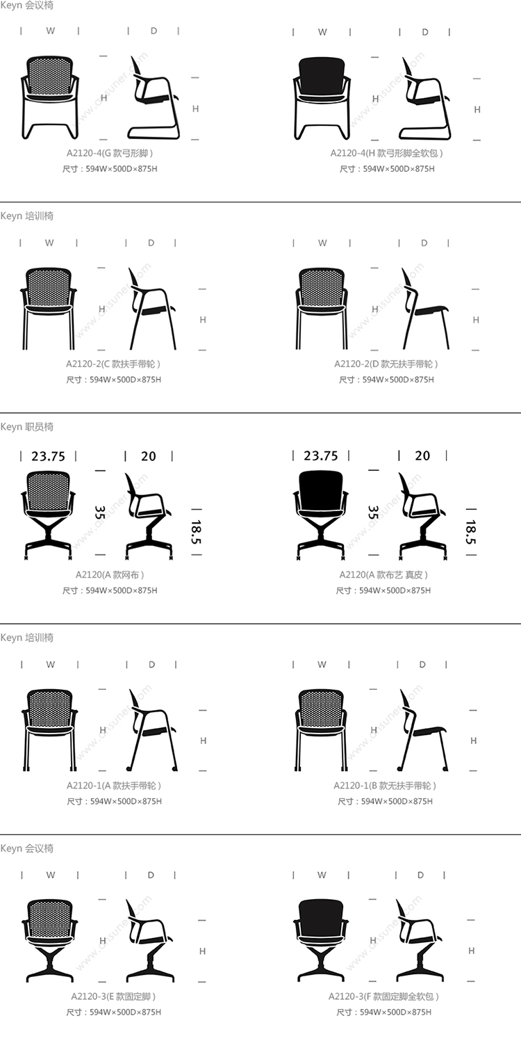 Keyn 会议椅 系列尺寸/示意图