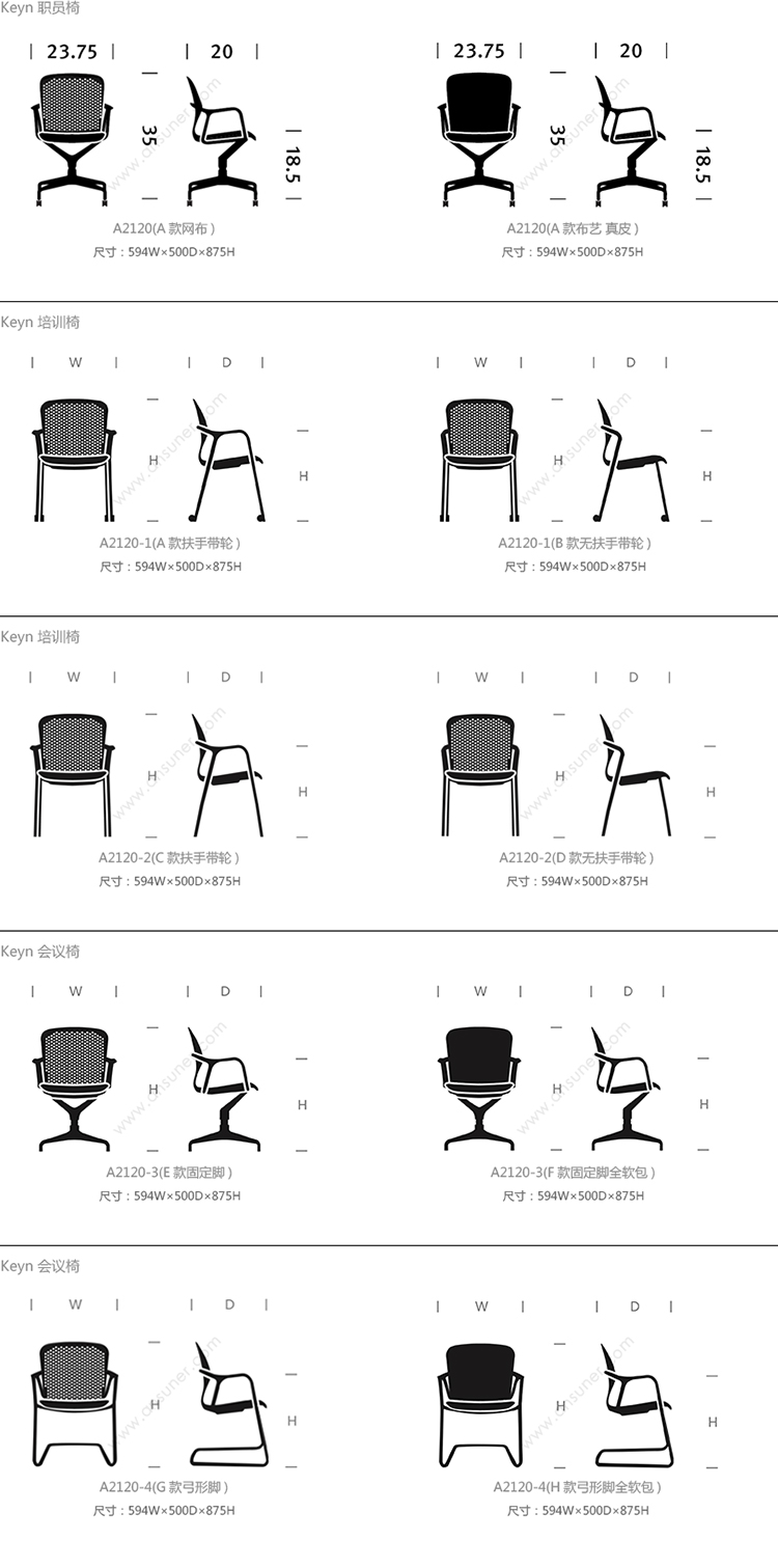 Keyn 职员椅 系列尺寸/示意图