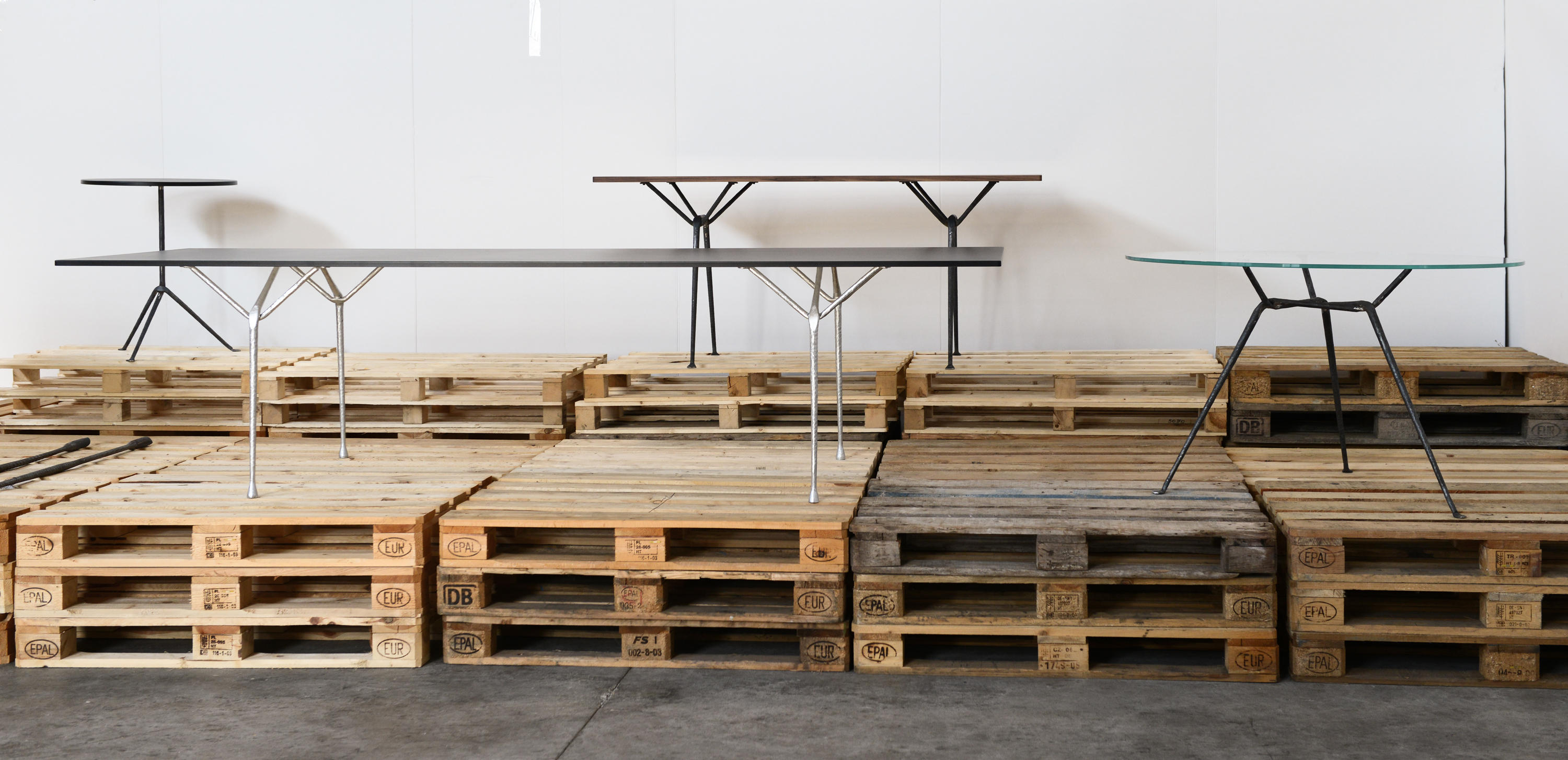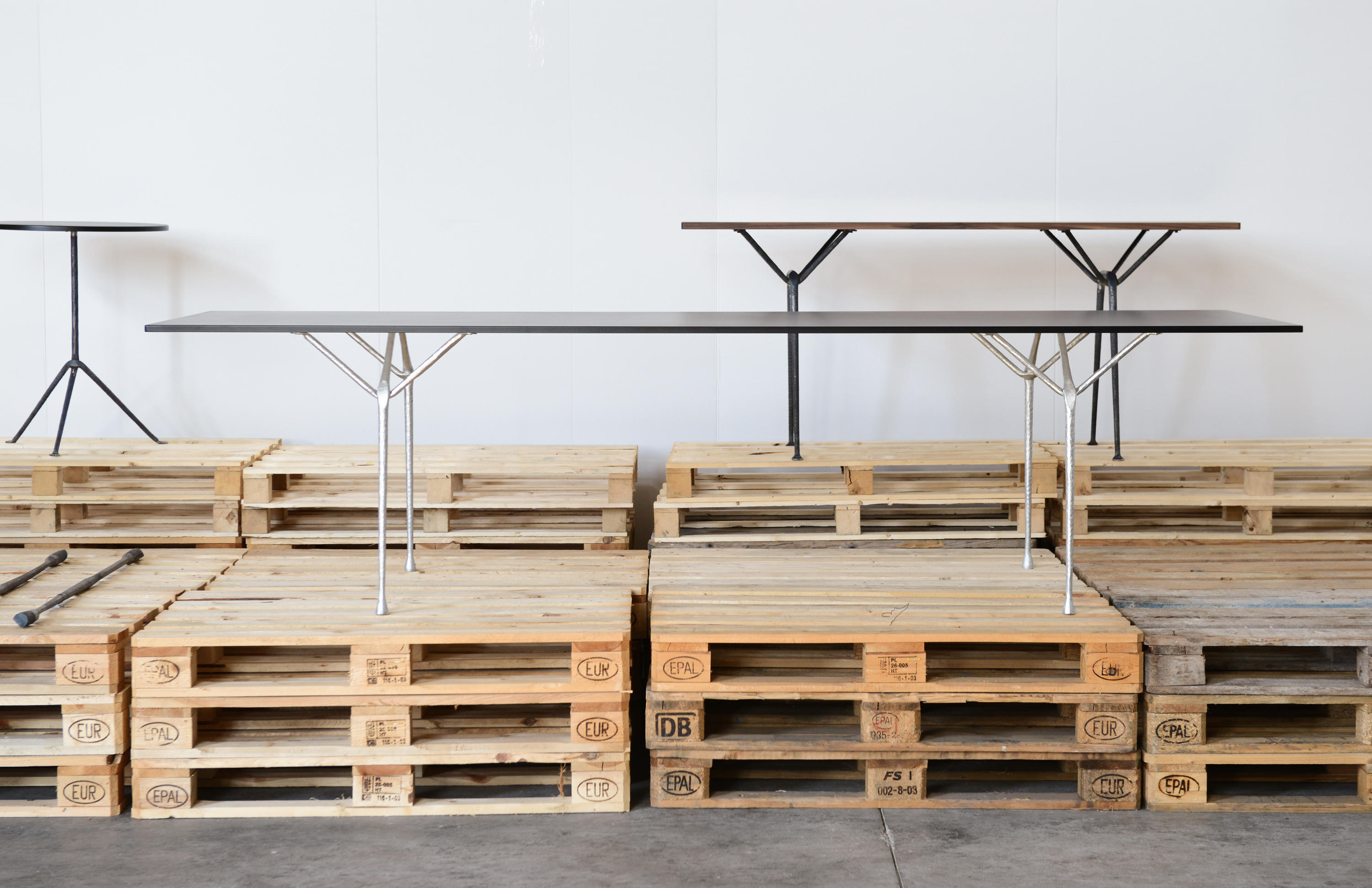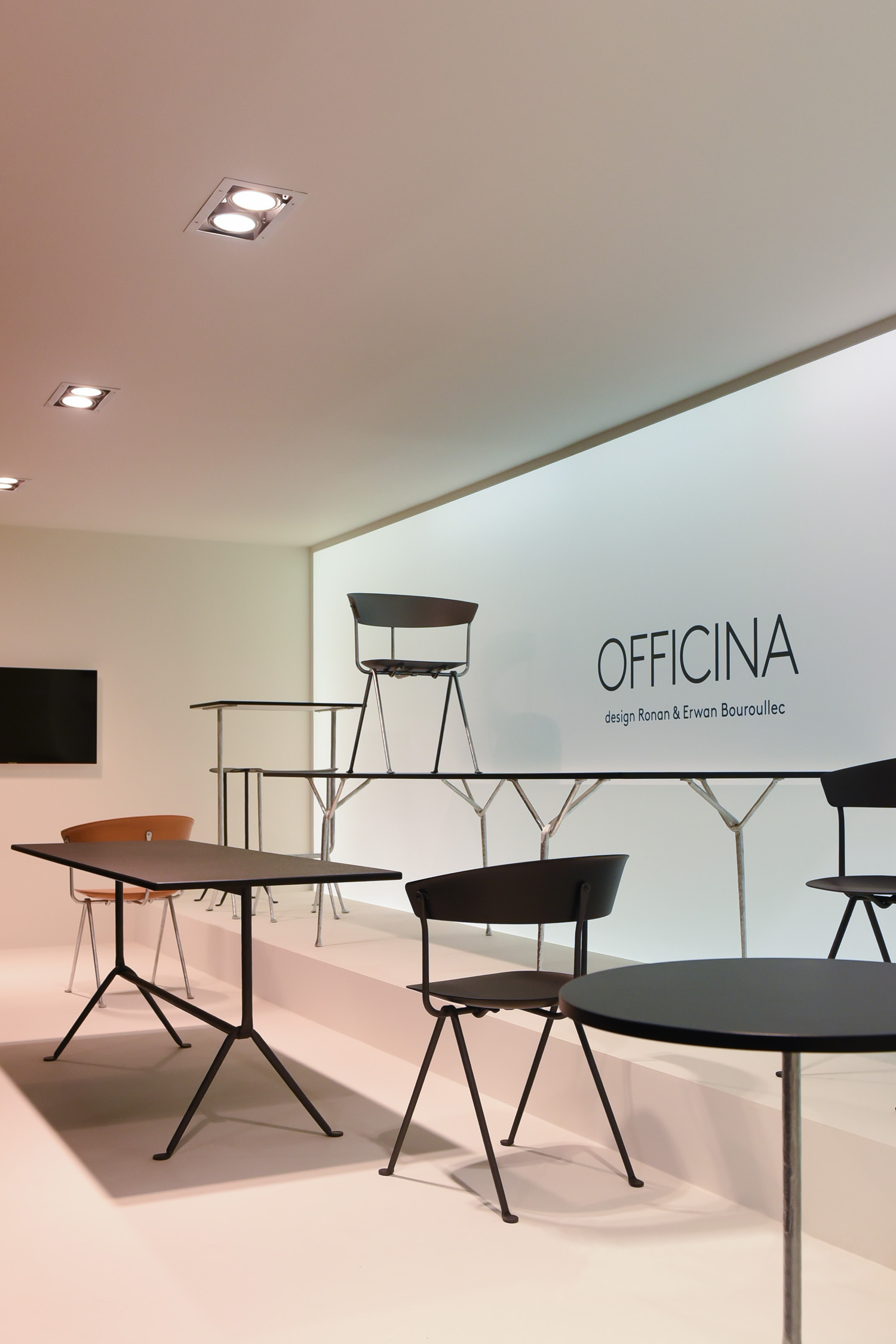 罗南补充说:“这个项目的微妙之处在于,它使用了这些暴力、强烈的手势,同时,材料的最小使用和它们的巧妙手法使它变得微妙。”几何形状的基座具有系统性,可以承受不同高度的压力,可以承受不同大小、不同形状和不同材质的顶部。