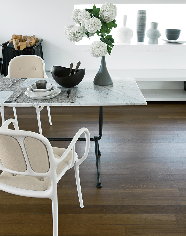 罗南补充说:“这个项目的微妙之处在于,它使用了这些暴力、强烈的手势,同时,材料的最小使用和它们的巧妙手法使它变得微妙。”几何形状的基座具有系统性,可以承受不同高度的压力,可以承受不同大小、不同形状和不同材质的顶部。