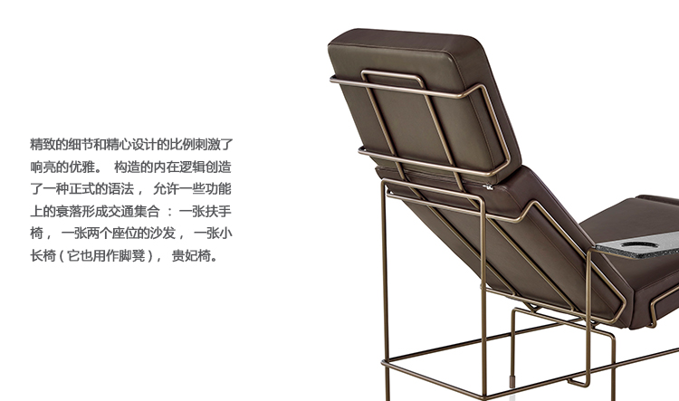 Traffic是一系列使用钢棒和室内装潢的家具。金属线材的三维线图与垫子的几何体积之间的相关性,标志着线材家具的共同内涵发生了重大变化。它的构思朴实无华,给人一种轻松愉快的感觉。精致的细节和精心设计的比例刺激了响亮的优雅。构造的内在逻辑创造了一种正式的语法,允许一些功能上的衰落形成交通集合:一张扶手椅,一张两个座位的沙发,一张小长椅(它也用作脚凳),贵妃椅。