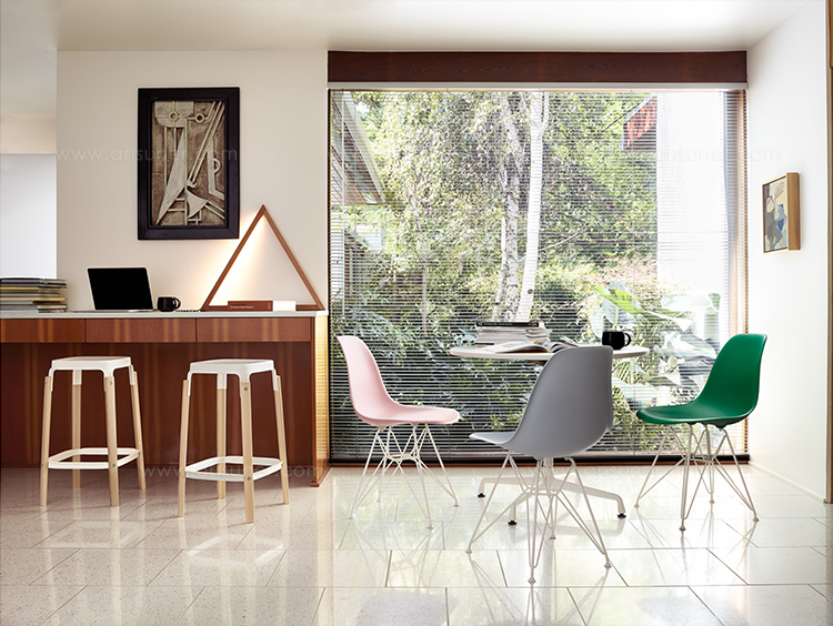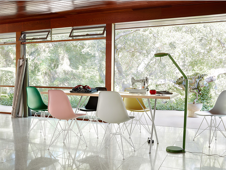 本单品为Eames Plastic Chair 系列成员之一,舒适的椅座外观设计是以添加了玻璃纤维强化的塑料来制作,再搭配上各式不同的脚座来增添使用的多样化,值得一提的是Eames Plastic Chair 的创新技术与材质,便它得以成为全世界第一张被大量制造的单椅。拜现今创新的科技所赐,全系列的Eames Plastic chair 终于再次制造,使用环保可回收的聚丙烯材质,求制作线条优美的椅座外壳,不但重量更轻,同时更具有更好的耐热性及抗化学性。