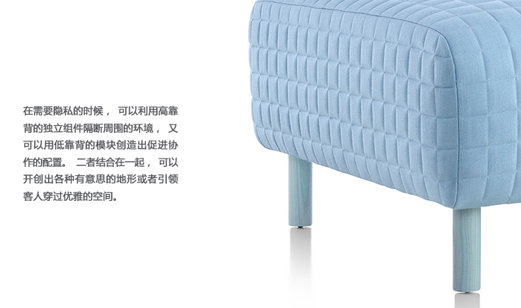 不论是工作还是在家,我们都需要一些共同空间,让我们可以进行适当交流,又能在不需要交流的时候在彼此周围独立的工作。ColourForm模块具有不同的靠背高度,能够创造出风格各异的办公环境。在需要隐私的时候,可以利用高靠背的独立组件隔断周围的环境,又可以用低靠背的模块创造出促进协作的配置。二者结合在一起,可以开创出各种有意思的地形或者引领客人穿过优雅的空间。
