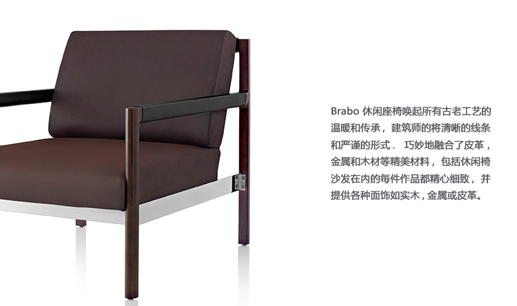 Brabo休闲座椅既让人体会到古老工艺的温暖和传承,又呈现出建筑师对简洁线条和严谨的形式的追求。该系列里的每件产品,包括休闲椅、长靠椅、沙发都是精心打造的上乘佳作,是皮革、金属、实木等各种精美材料的巧妙融合。您有各种饰面可挑选,包括实木、金属或皮革饰面,使该品成为休闲、工作和生活空间的完美选择。