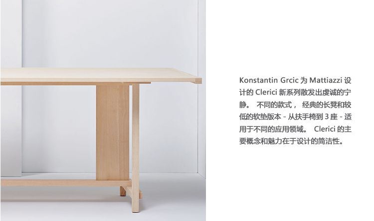 Clerici将慕尼黑华体会体育官方在线官网Konstantin Grcic的清洁工业美学与Mattiazzi在木材中的最精湛工艺结合起来。这个休息室提供一个扶手椅、一个两个座位和一个三个座位的长椅。细长而稀疏,Grcic解构了传统的座椅形式,木板和空隙之间有着可爱的相互作用。高扶手围绕背部延伸,形成必要的框架,而缺乏完整的背部或侧面则为设计增添了低调的轻盈感。座位上有一个小小的坡度,让您在休息片刻时滑倒。理想的欢迎和过渡地区,Clerici发表了引人注目的声明。