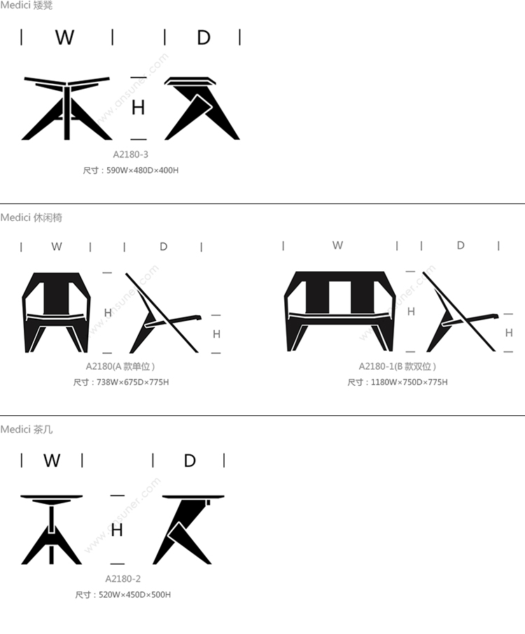 Medici 系列尺寸/示意图