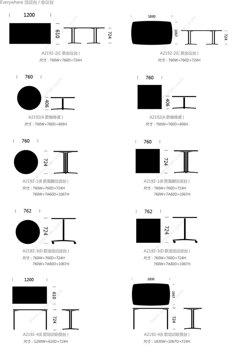 Everywhere 系列尺寸/示意图