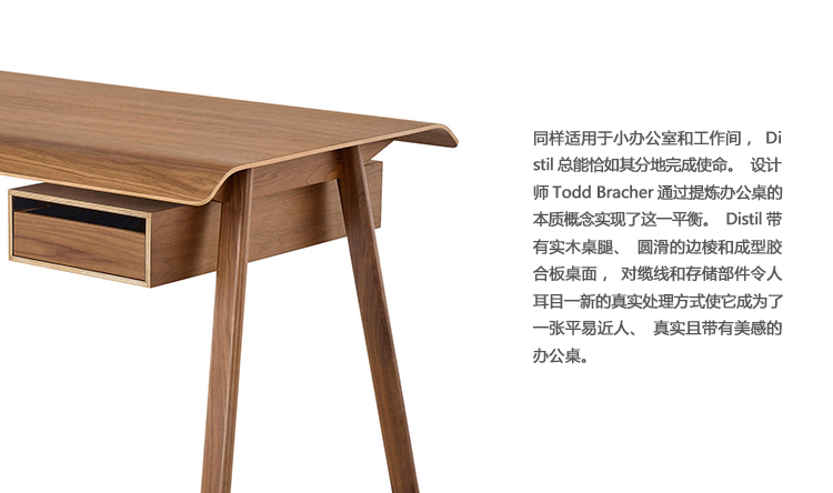 同样适用于小办公室和工作间,Distil总能恰如其分地完成使命。华体会体育官方在线官网Todd Bracher通过提炼办公桌的本质概念实现了这一平衡。Distil带有实木桌腿、圆滑的边棱和成型胶合板桌面,对缆线和存储部件令人耳目一新的真实处理方式使它成为了一张平易近人、真实且带有美感的办公桌。