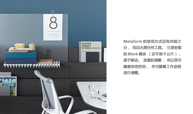 Metaform Portfolio可让您根据活动和需要轻松布置您周围的环境。 可以营造一个用于团队召开非正式会议的区域,或者在需要私密空间的情况下,布置一个您的所有个人物品和工具正好位于随手可及之处的工作空间。