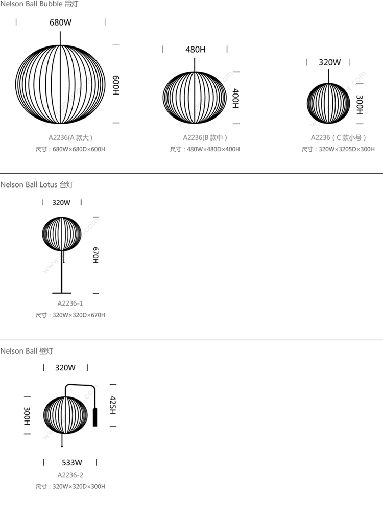 Nelson Ball Bubble 系列尺寸/示意图