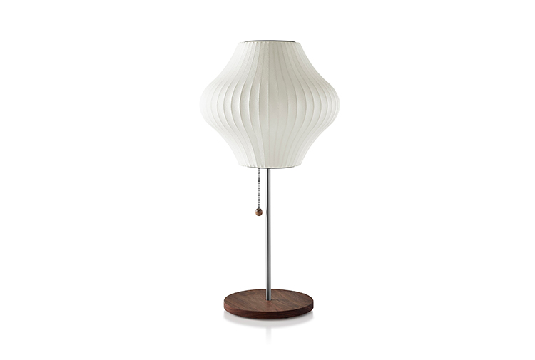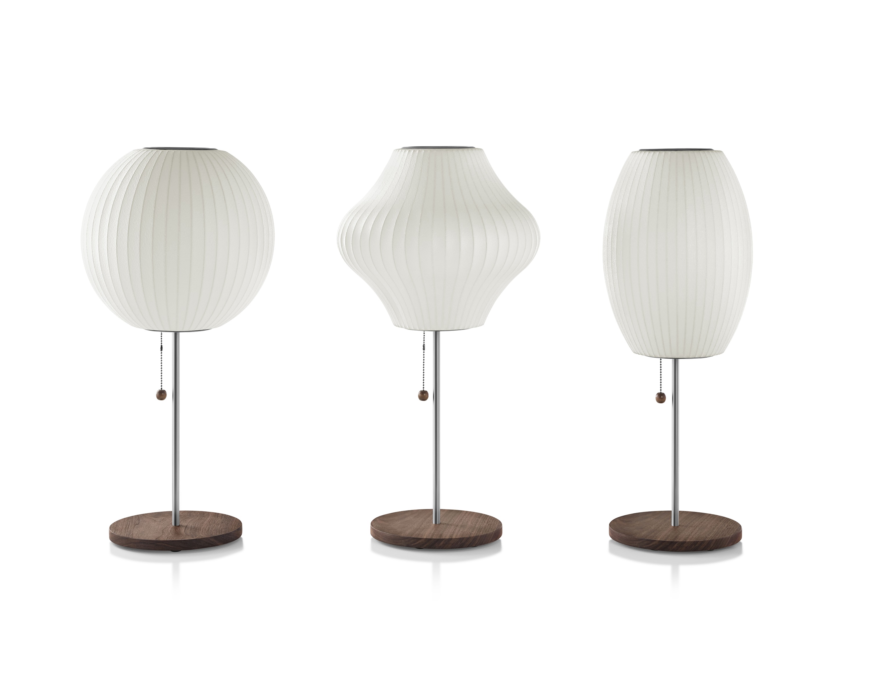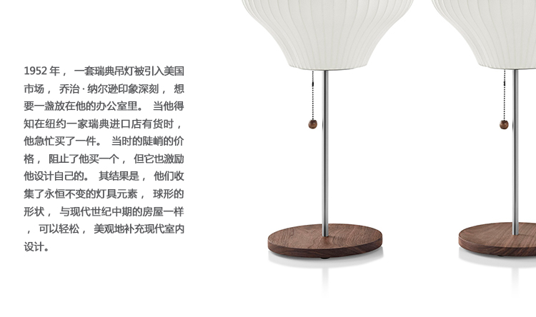 Nelson Pear Lotus台灯采用钢底设计,带有或不带胡桃木盖,并配有86英寸插入式电源线,使桌面环境优雅。 带有实心胡桃木末端的拉链提供了打开和关闭灯泡的便捷方式。 1952年,一套瑞典吊灯被引入美国市场,而乔治·尼尔森给人留下了深刻的印象,想要一台办公室。 当他得知它在纽约的一家瑞典进口商店有售时,他赶紧去买一个。 那段时间陡峭的价格标签使他无法购买,但这也激发了他设计自己的价格。 结果是永恒的灯具系列,具有基本的球形形状,与现代世纪中期的房屋一样,可以轻松,美观地补充现代室内设计。