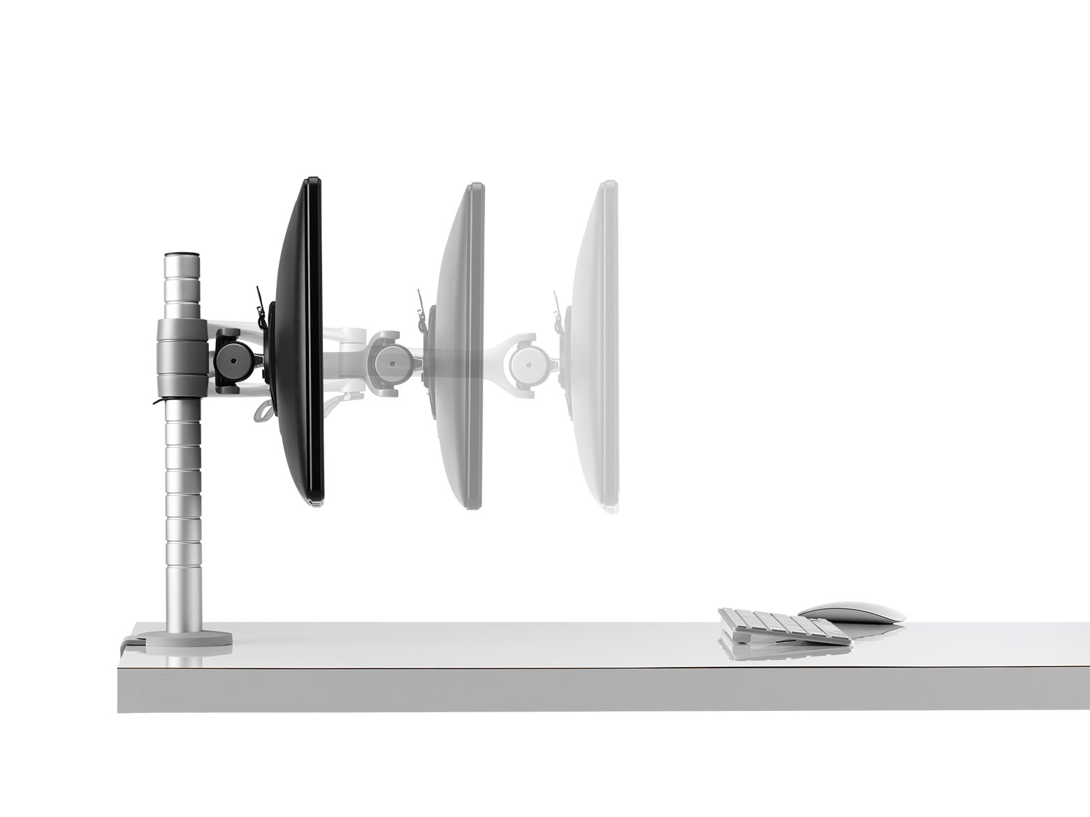 Wishbone系列的精致设计释放了工作台面上的空间,同时允许您将屏幕定位在适当的距离,以缓解颈部和眼睛疲劳。